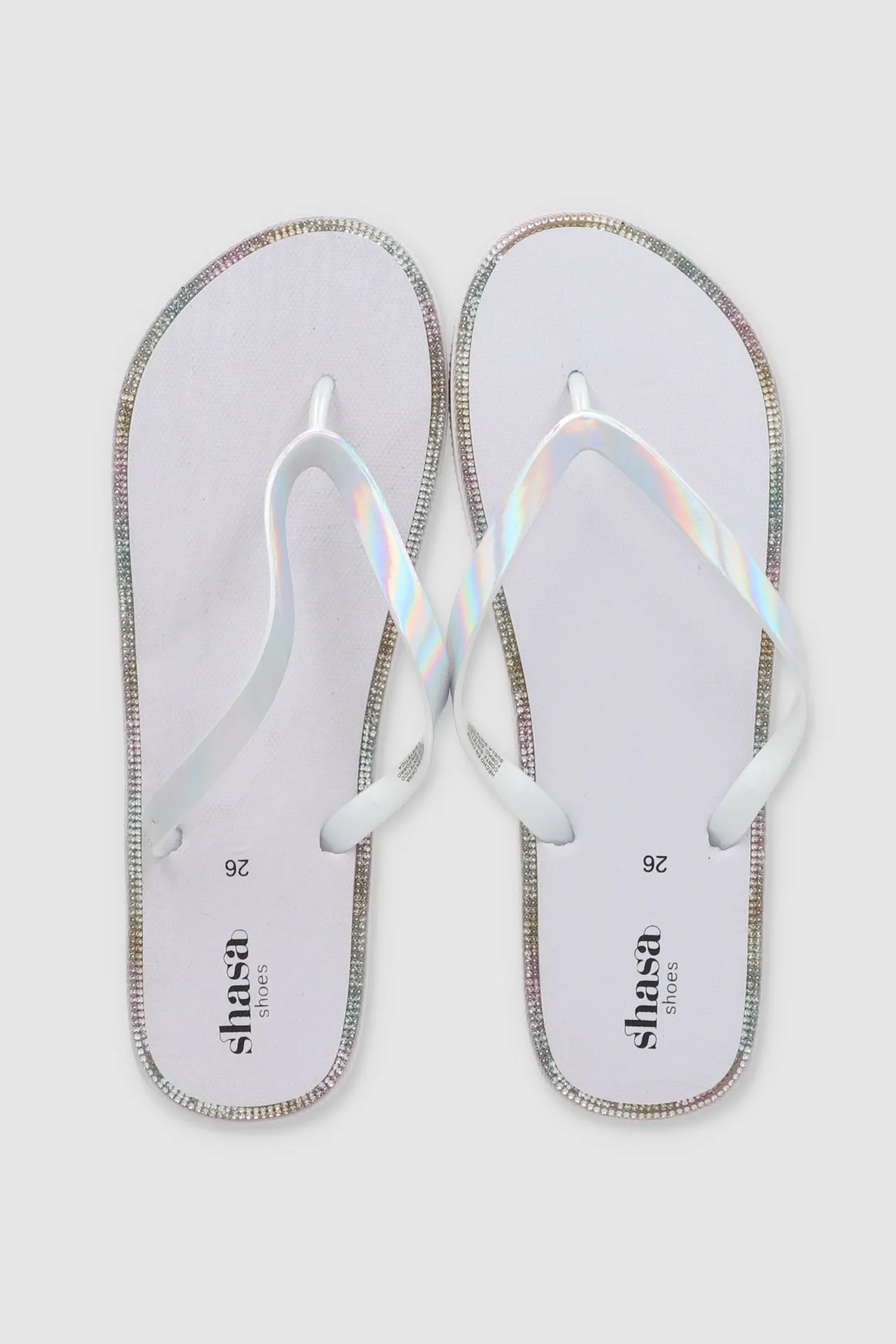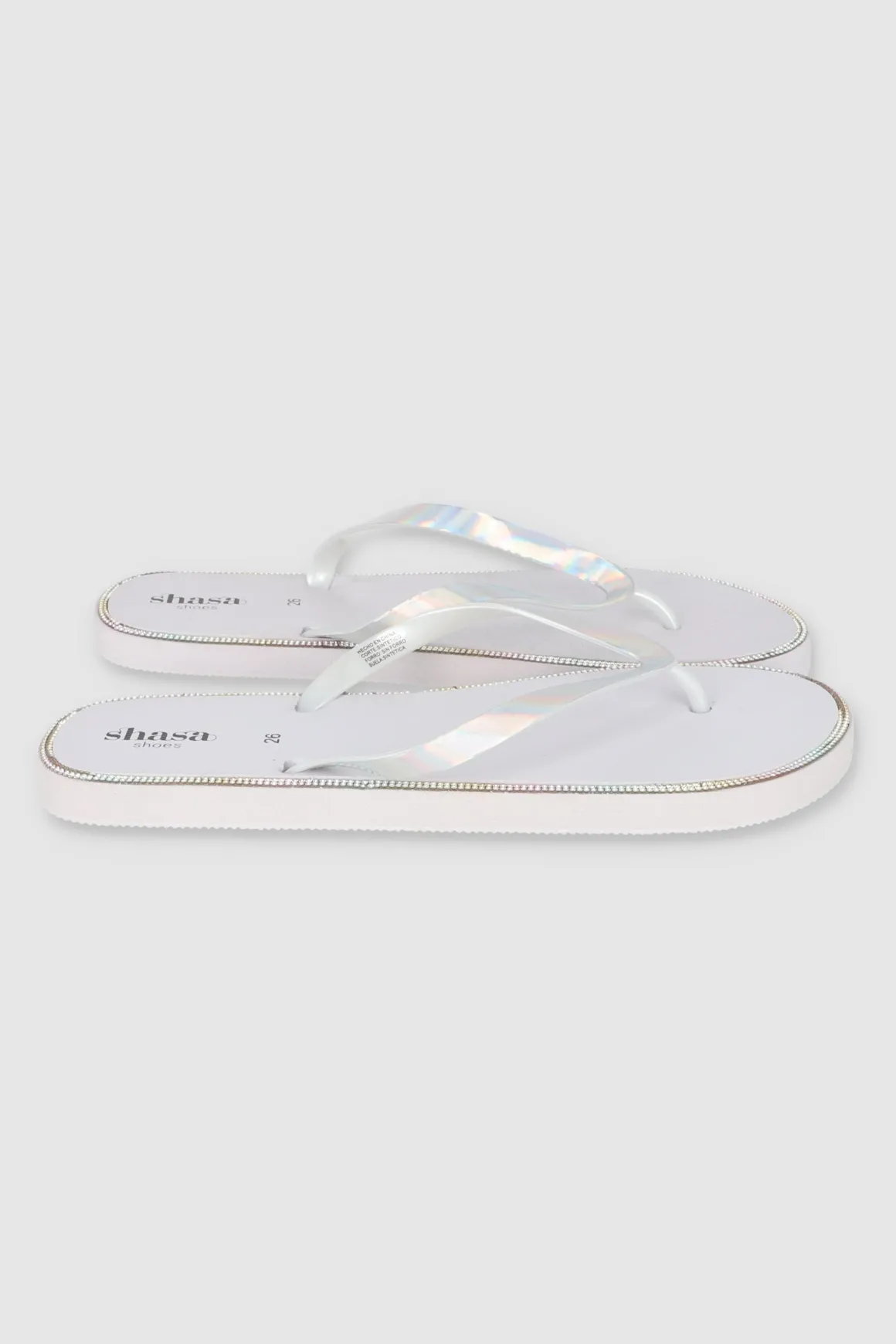 ¡Dale un toque mágico a tu look con nuestras sandalias flip flop! Cuentan con cintas iridiscentes que cambian de color con la luz, perfectas para añadir un toque divertido y moderno a tu outfit.