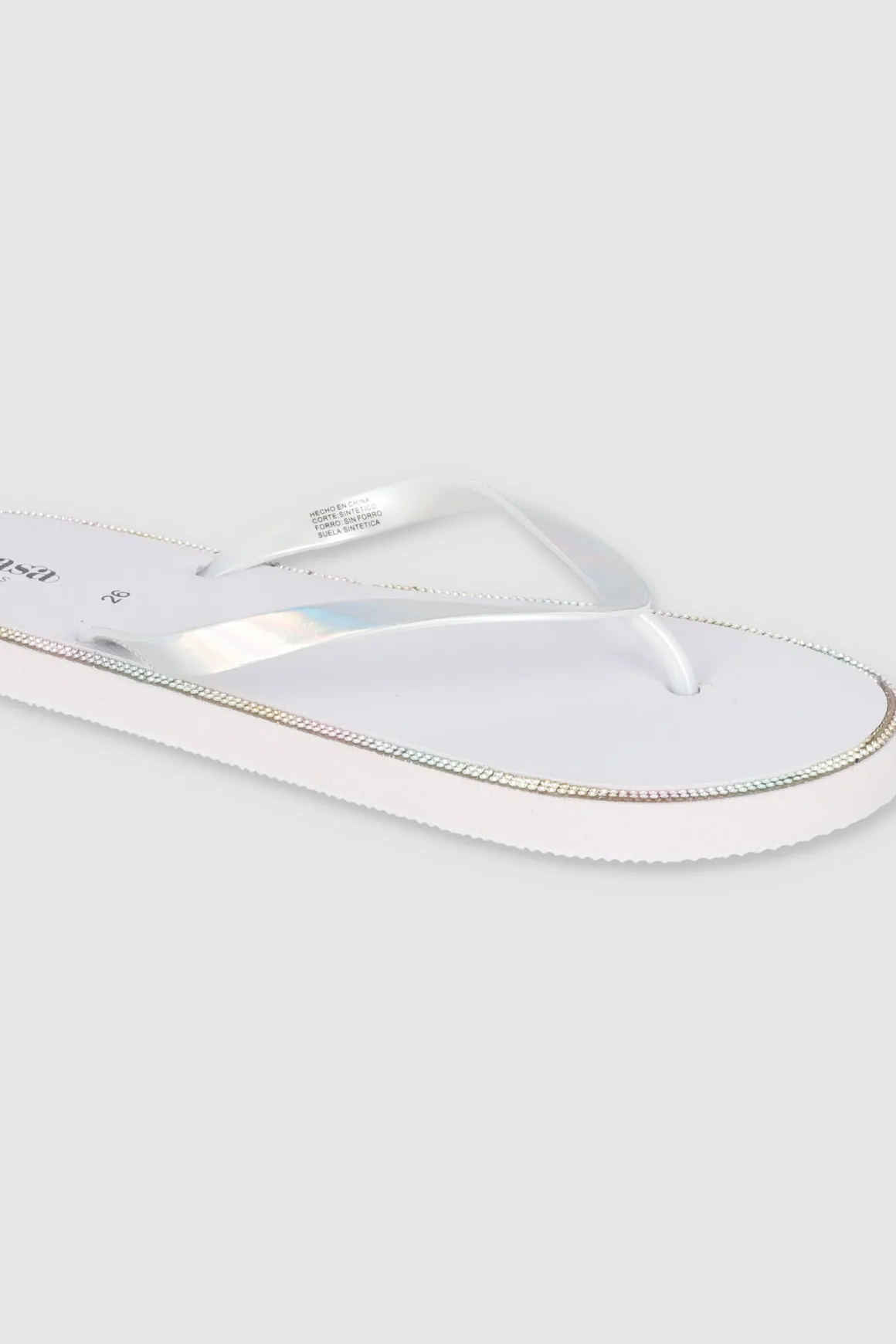 Los bordes de la suela con aplicación de brillos aportan un extra de destello, haciendo que cada paso brille. Ideales para la playa, la piscina o cualquier salida casua son el accesorio imprescindible para tus días soleados.