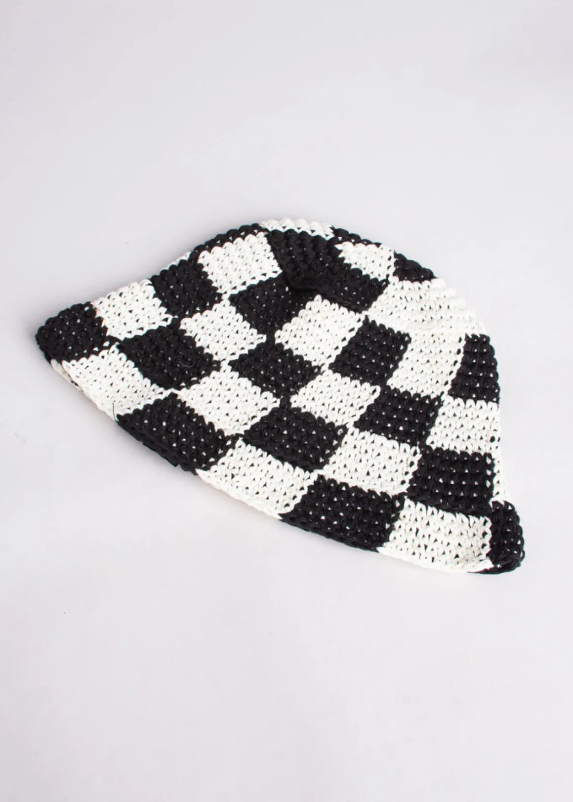 Gorro pescador tejido con diseño bicolor de cuadros.