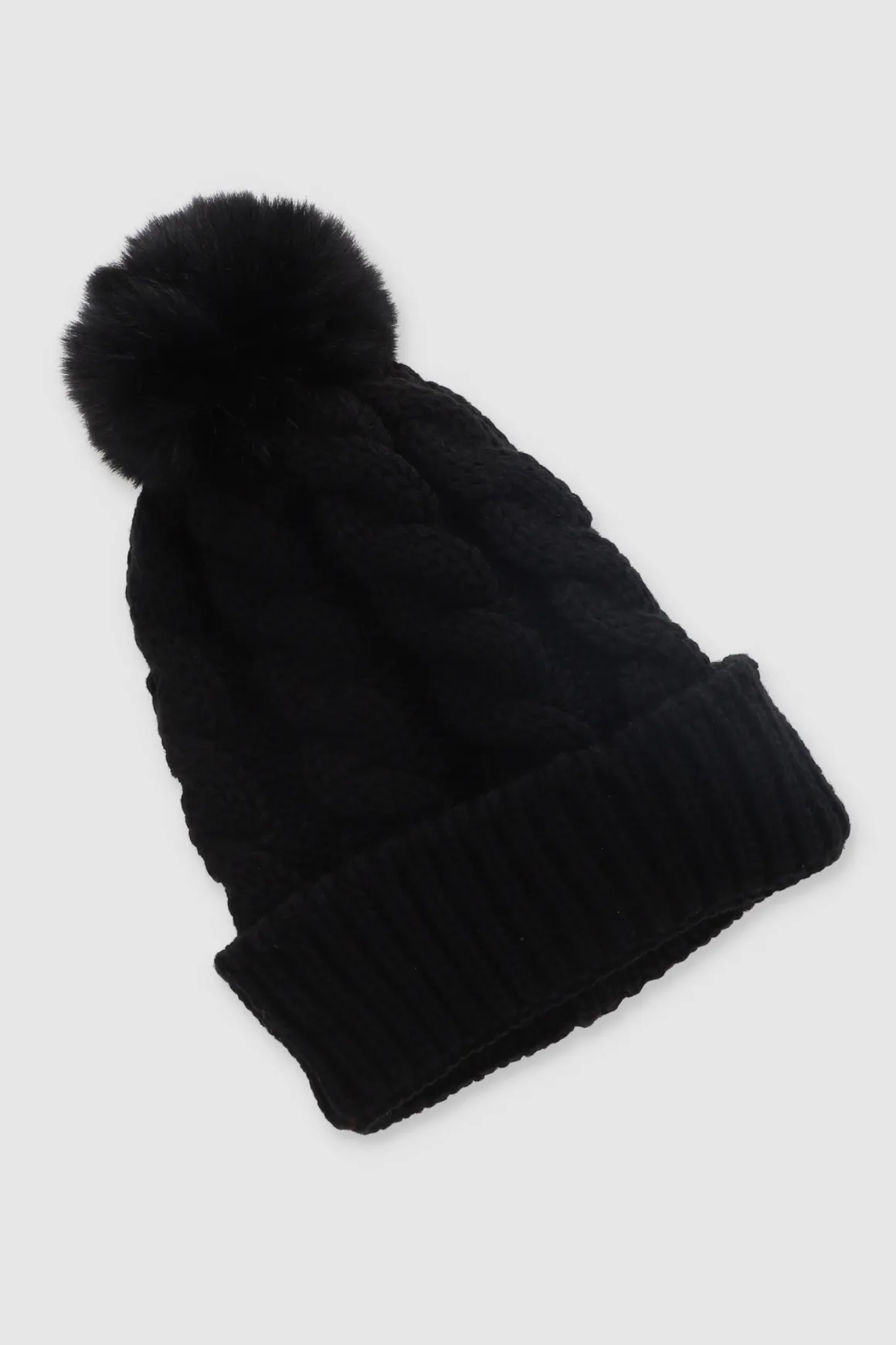 Gorro tejido con diseño trenzado y pompón superior.