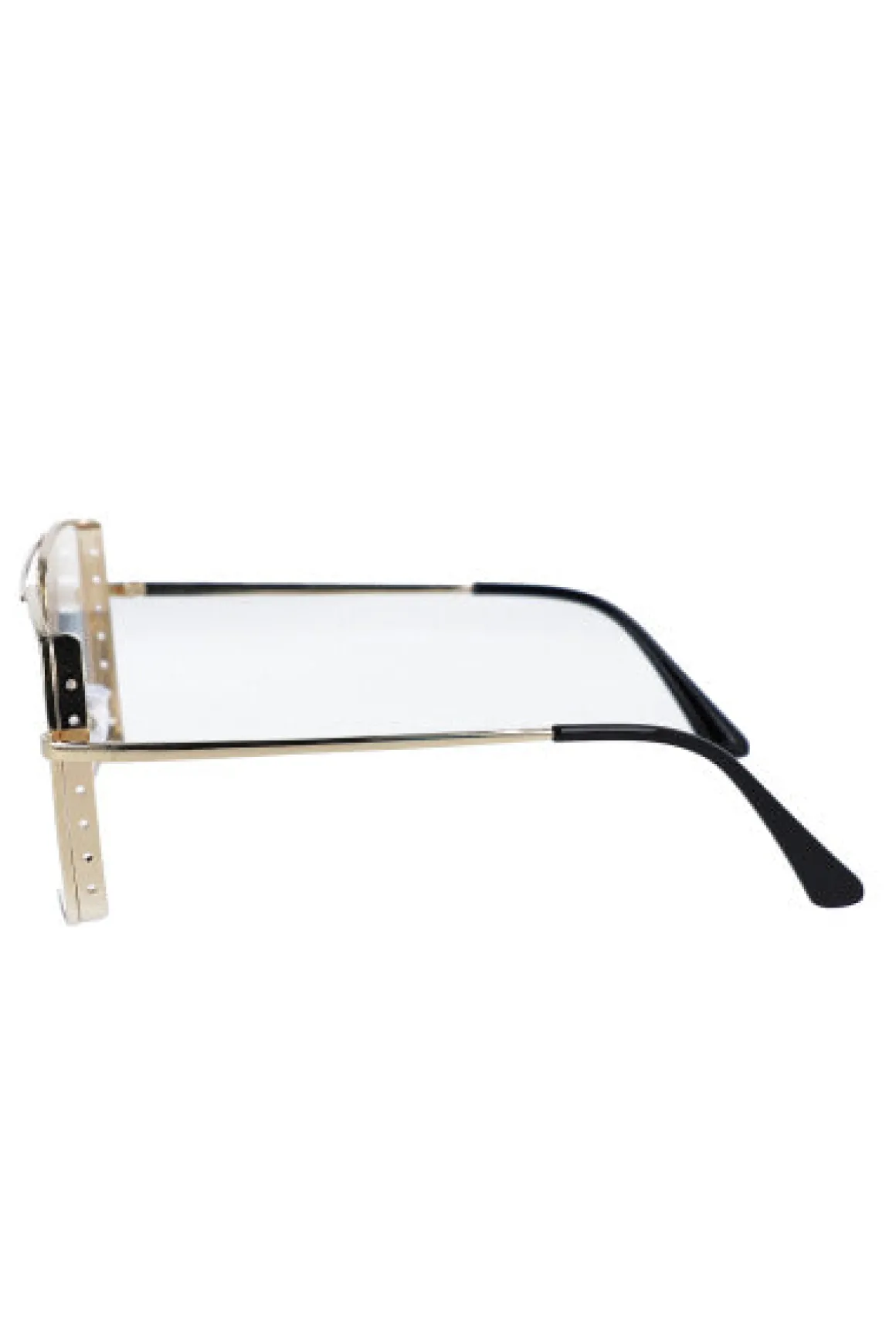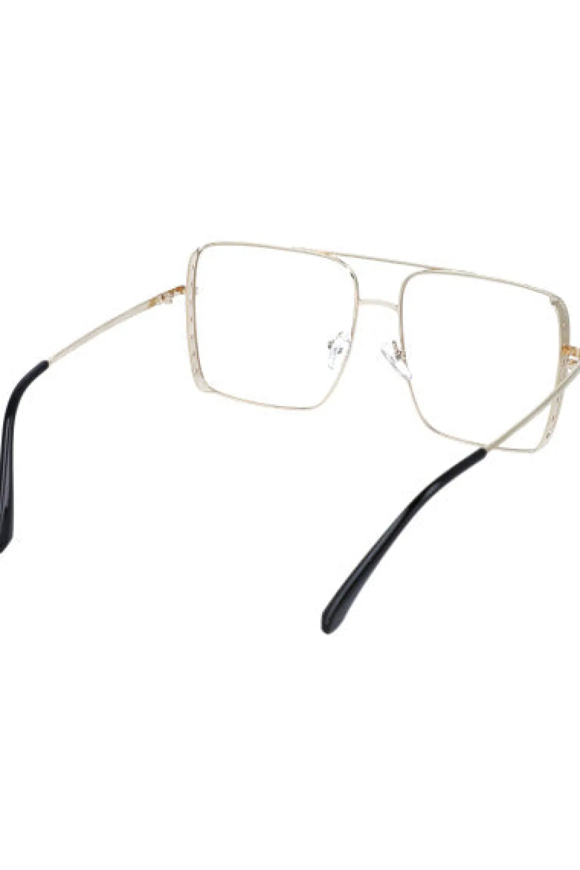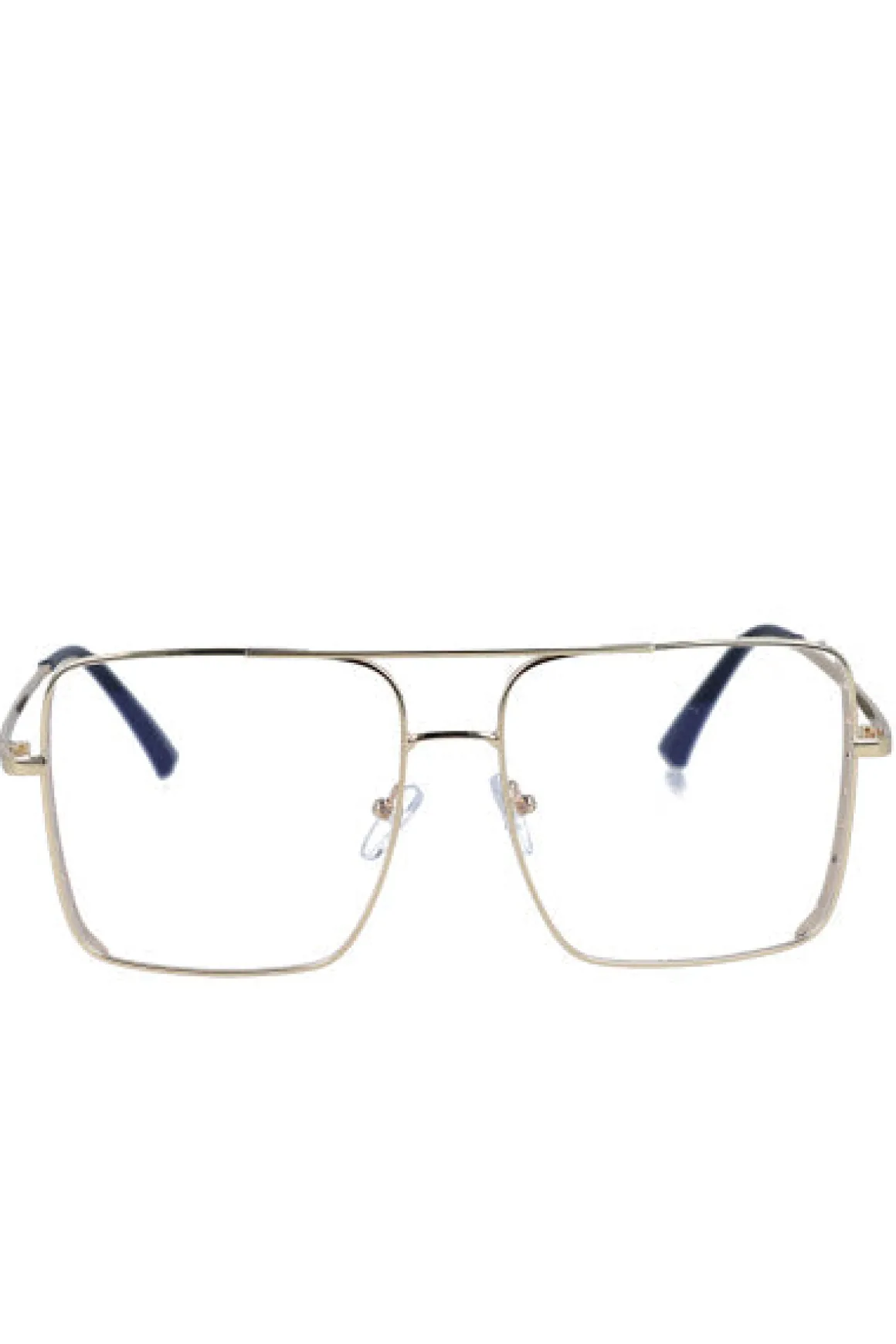 Lentes aviador cuadrados con armazon metálico delgado. Micas transparentes.