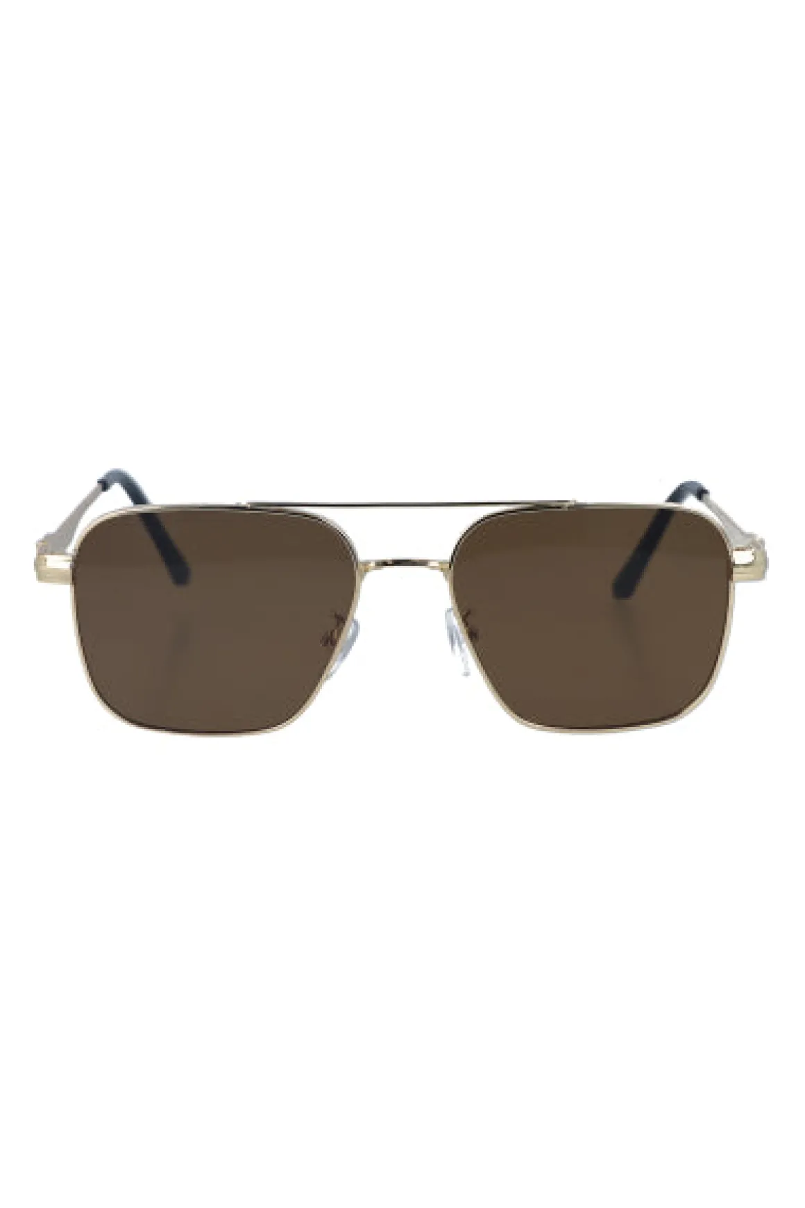 Gafas de sol estilo aviador con micas entintadas y armazón fino. Patilla delgada metálica con almohadilla de silicona antideslizante. Sus soportes nasales garantizan un ajuste cómodo durante todo el día.