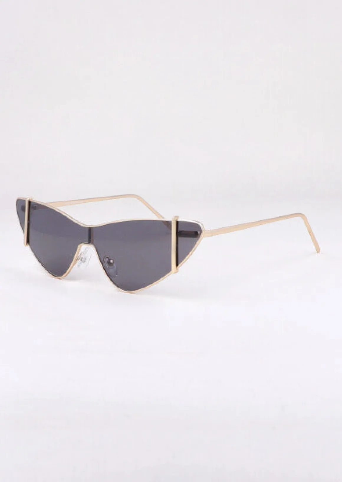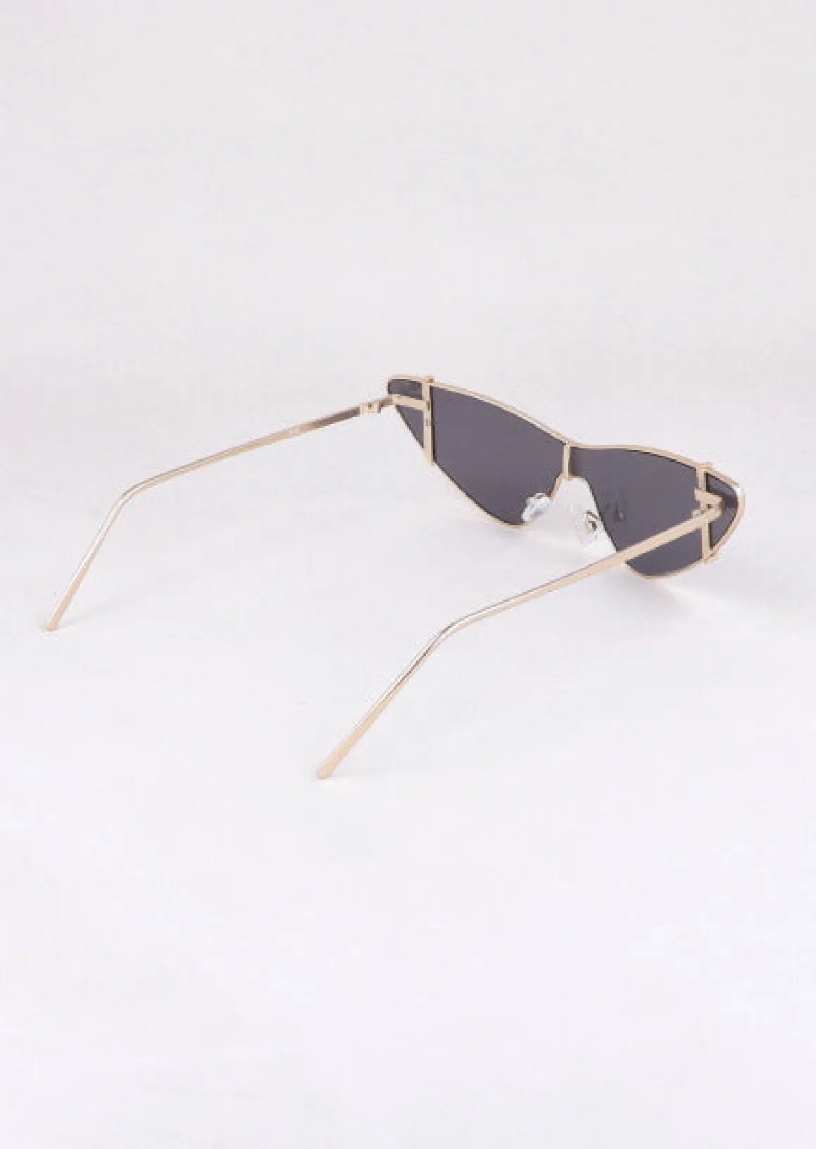 Lentes de sol cateye con puntas, soportes nasales y patas metálicas..