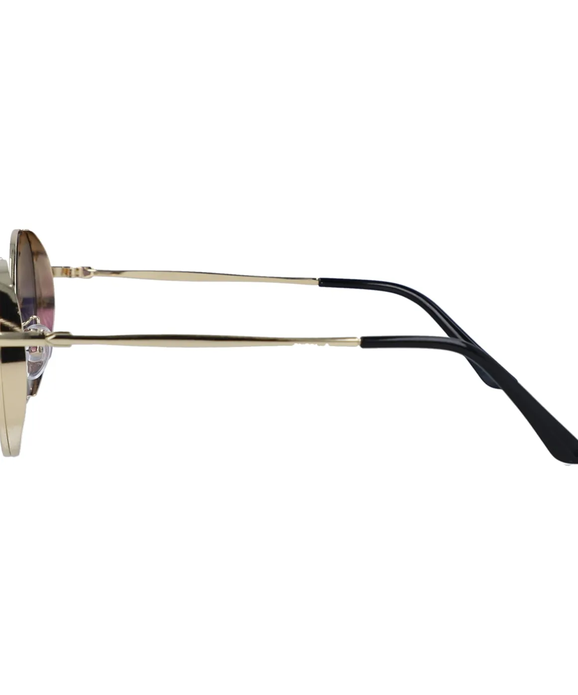 Gafas de sol con diseño redondo y armazón delgado de metal. Patilla delgada metálica con almohadilla de silicona antideslizante. Sus soportes nasales garantizan un ajuste cómodo durante todo el día.