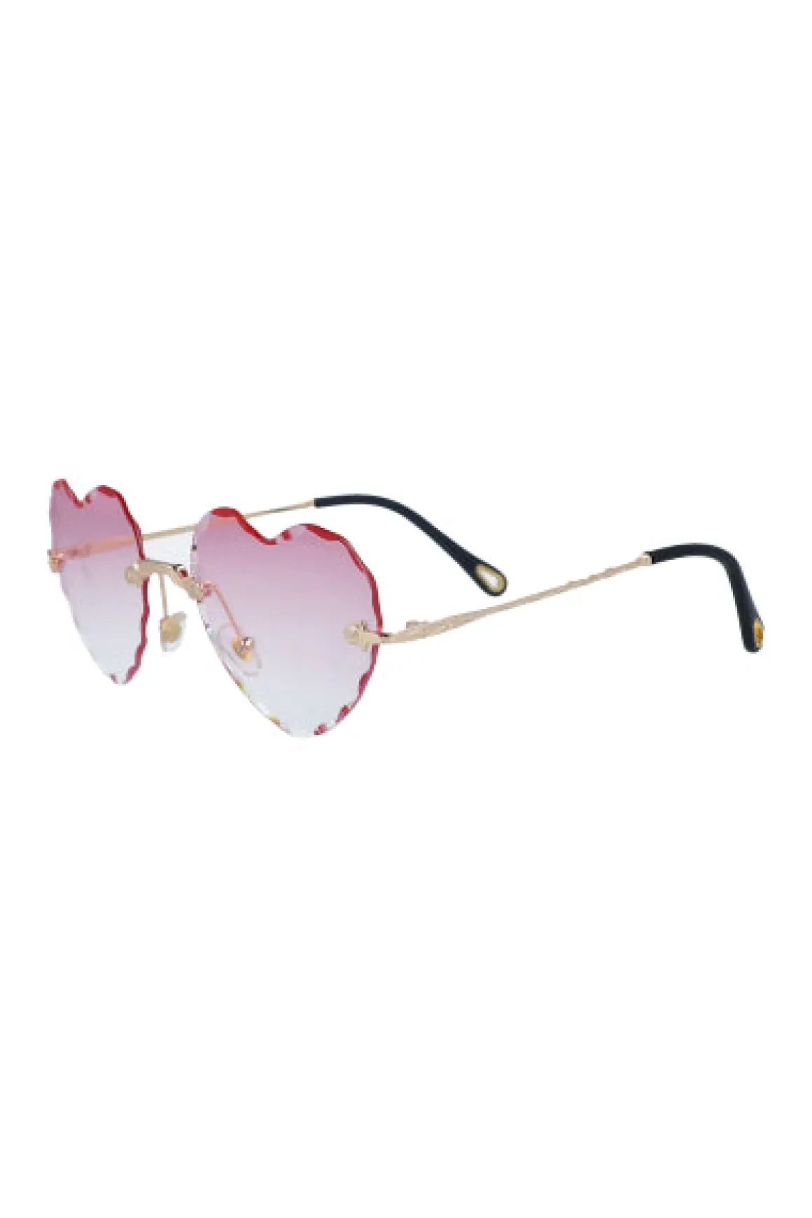 Lentes con diseño de corazones, micas tintadas con degradado y textura en bordes.