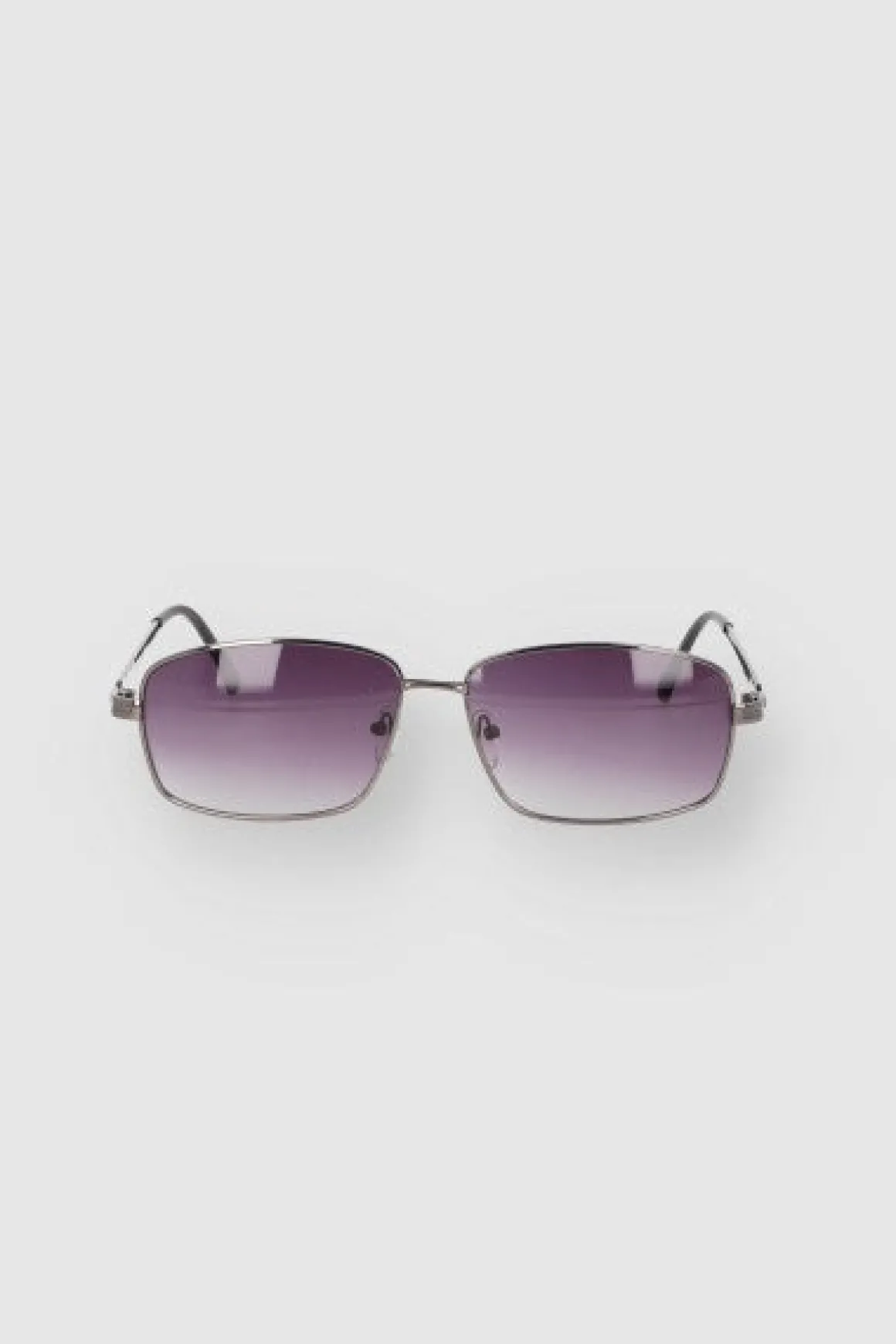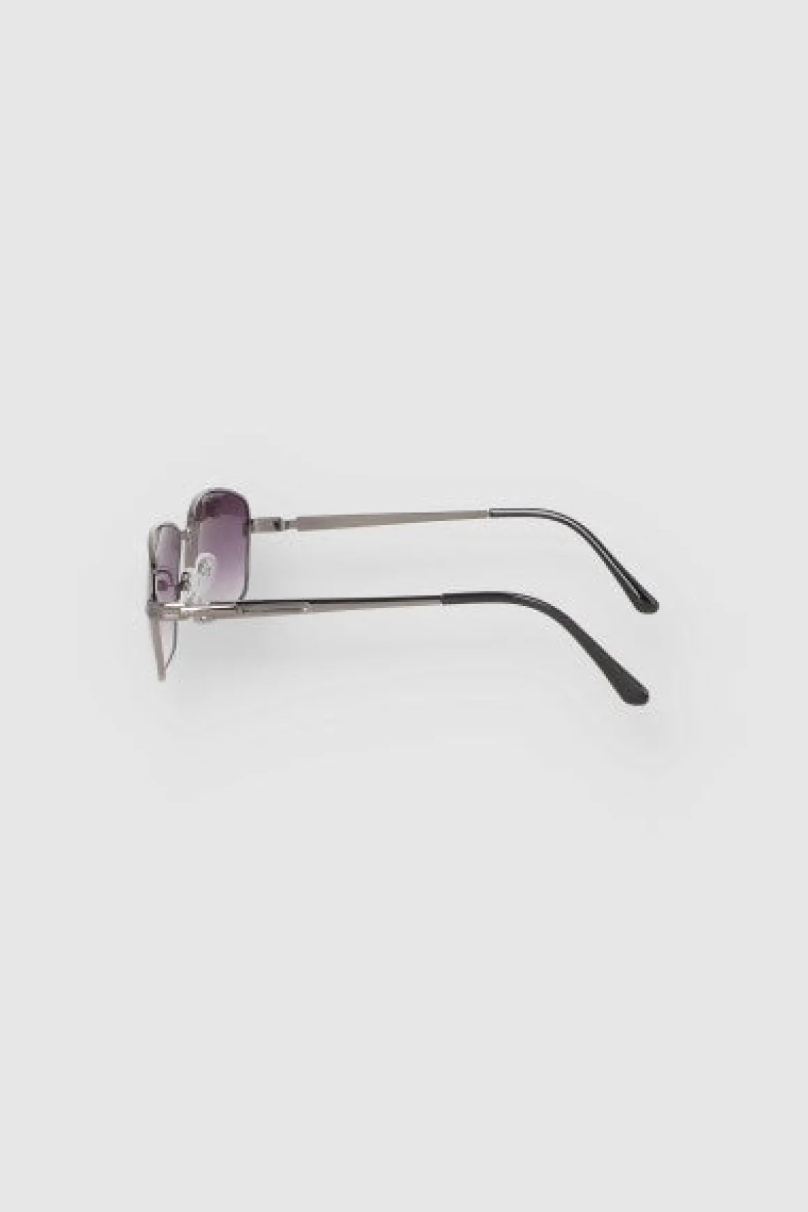 Lentes retro rectangulares con mica tintada, arco con almohadillas transparentes y patillas delgadas..
