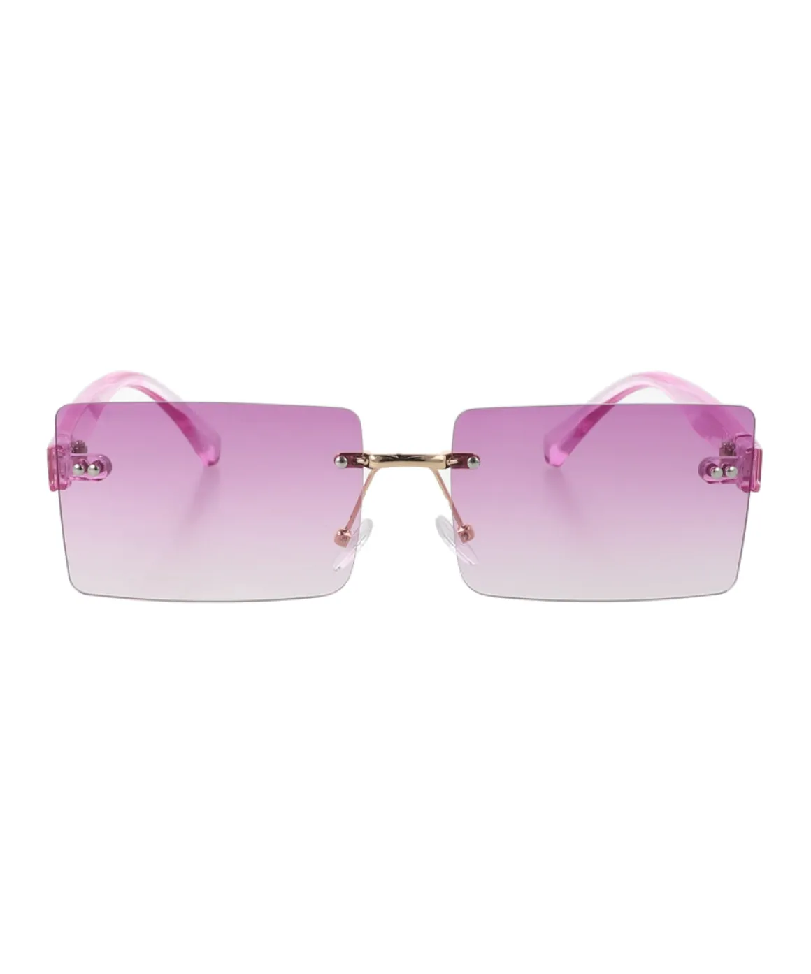 Gafas de sol con micas entintadas en efecto degradado. Diseño retro sin armazón con patilla delgada de pasta transparente. Sus soportes nasales garantizan un ajuste cómodo durante todo el día.