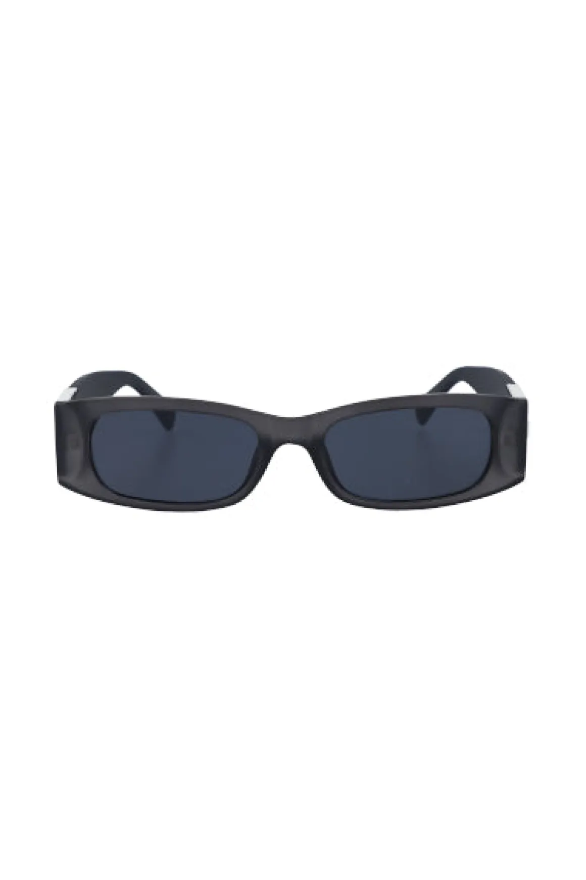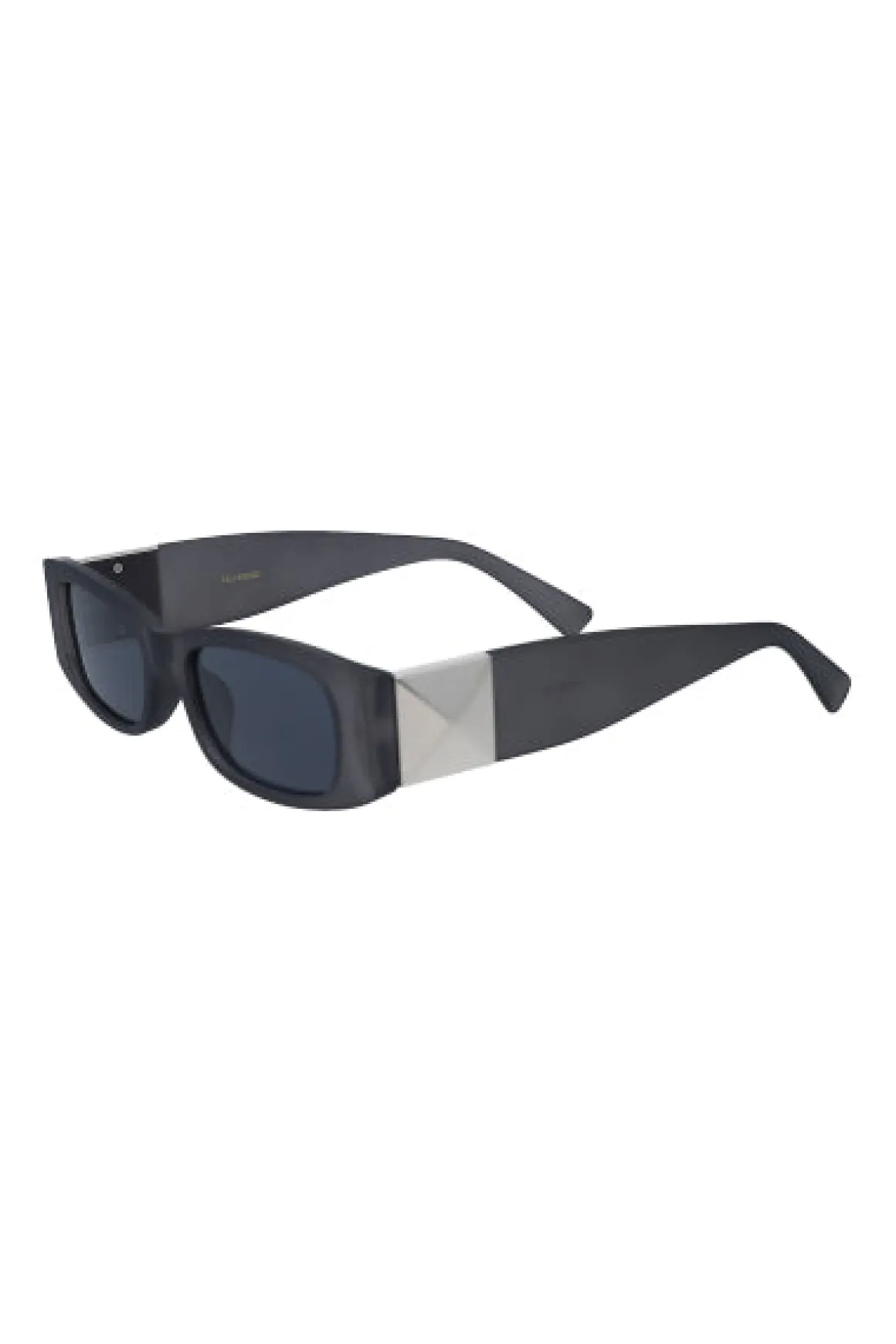 Lentes de sol semiredondos con mica oscura. Patilla ancha con detalle metálico.