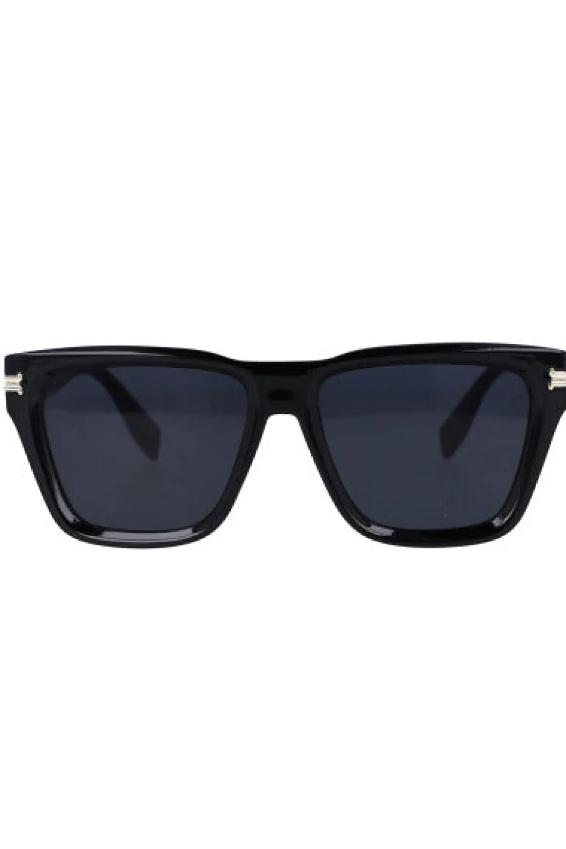 Lentes de sol cuadrados con armazon delgado y aplicaciones de metal.