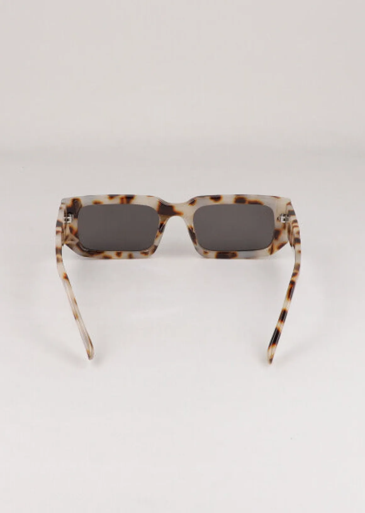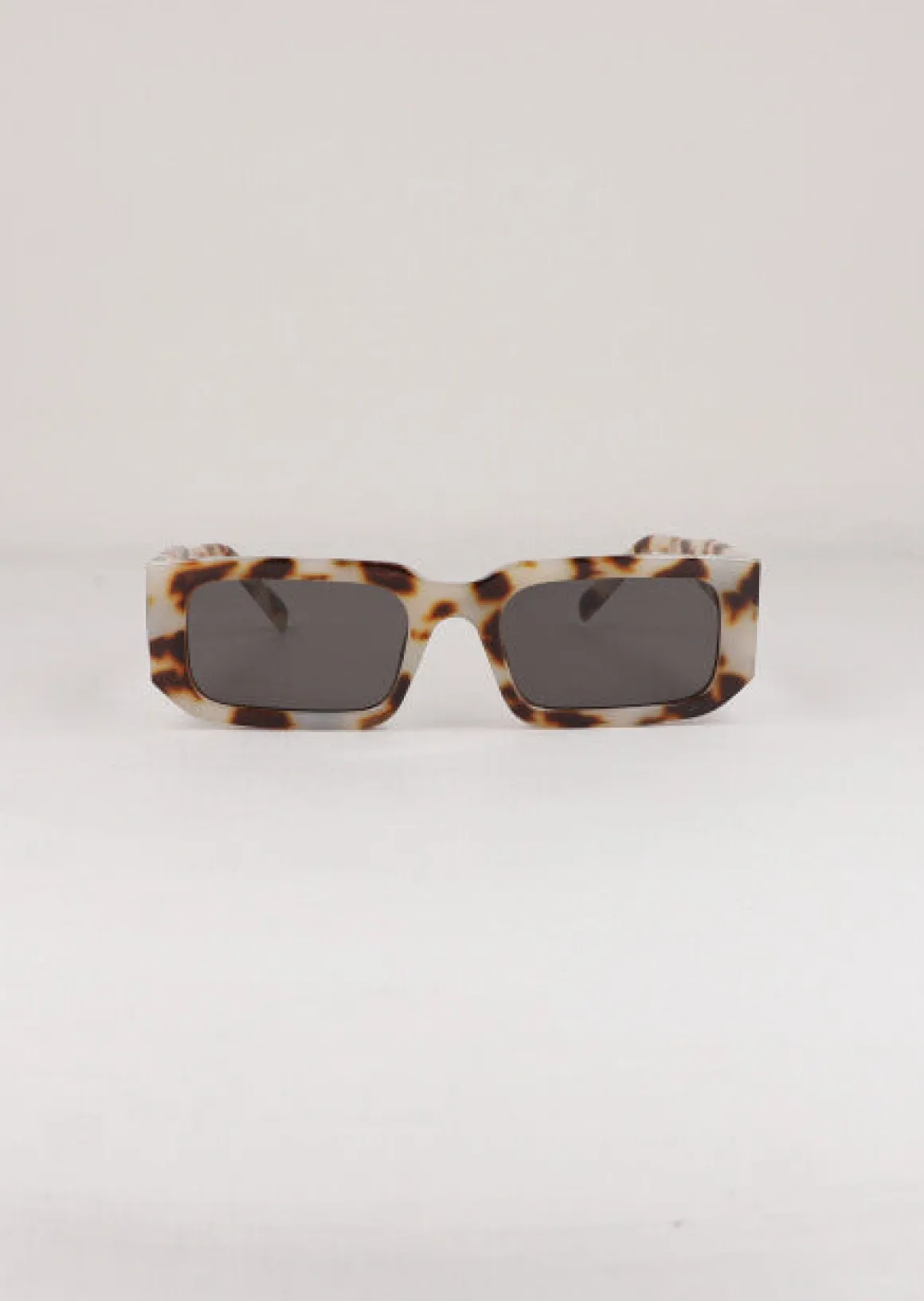 Lentes de sol rectangulares con micas oscuras. Estampado carey con patillas gruesas..