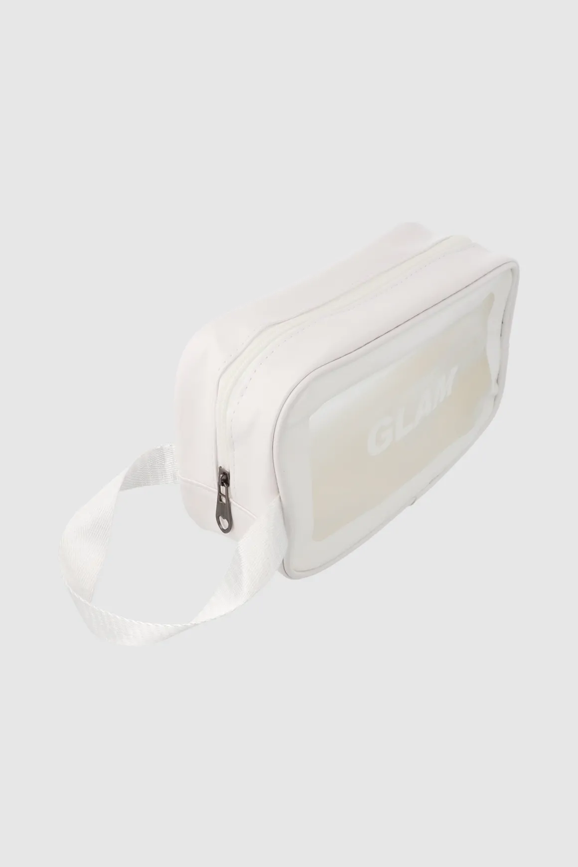 Nuestro neceser bicolor Glam es el accesorio perfecto para llevar tus artículos de belleza de manera organizada. Con la palabra «Glam» impresa en el frente, este neceser combina estilo y funcionalidad.