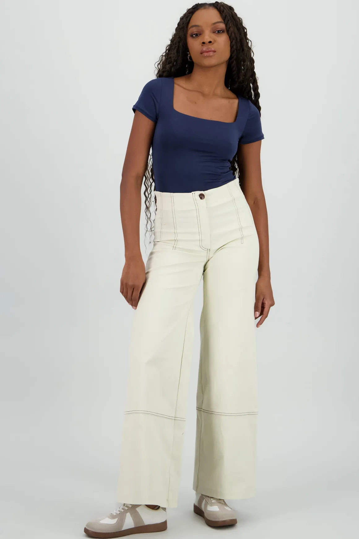 Este pantalón es lo que necesitas en tu guardarropa para elevar tu outfit sin esfuerzo. Con su diseño amplio y un toque de contraste en las costuras, es perfecto para quienes buscan comodidad sin sacrificar estilo.