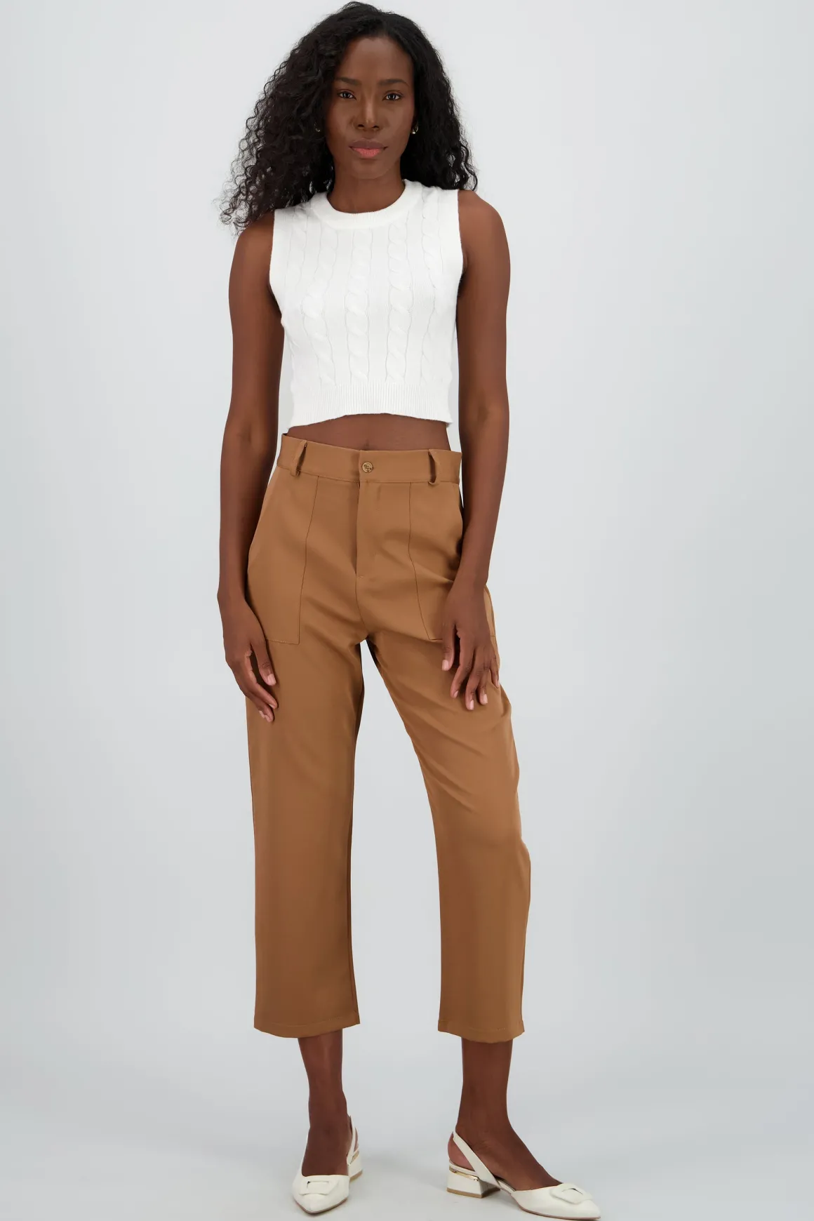 Pantalón Cintura Alta Capri Bolsas