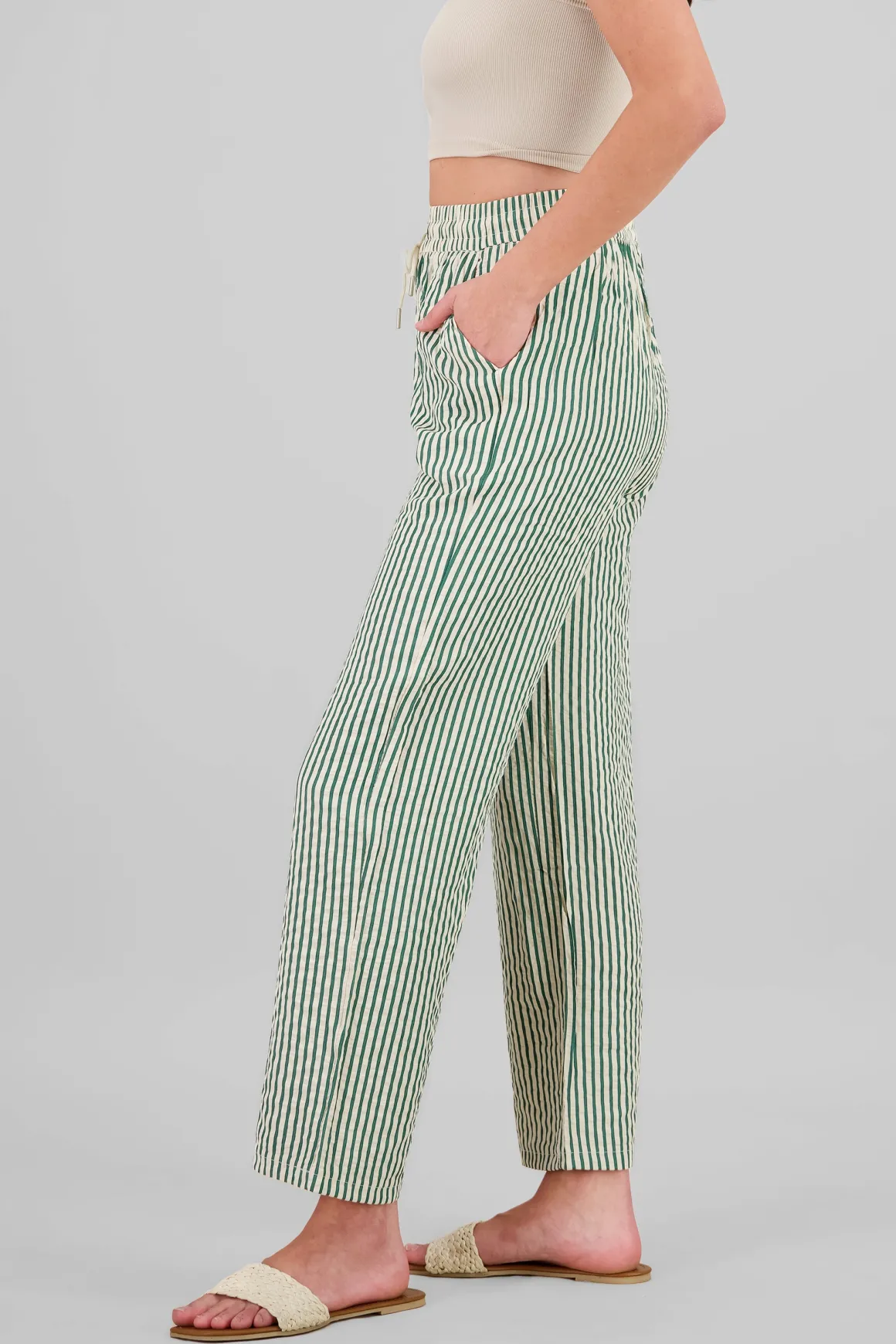 ¡Atrévete a jugar con tu estilo! Este pantalón de rayas es la pieza que necesitas para hacer que tu outfit sea inolvidable. Su diseño único y divertido le dará un toque especial a tu guardarropa, ideal para cualquier ocasión.