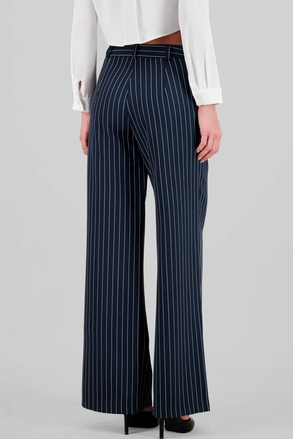Un estilo sastre con un toque moderno. Este pantalón de rayas y bolsillos es ideal para un look pulido y casual.