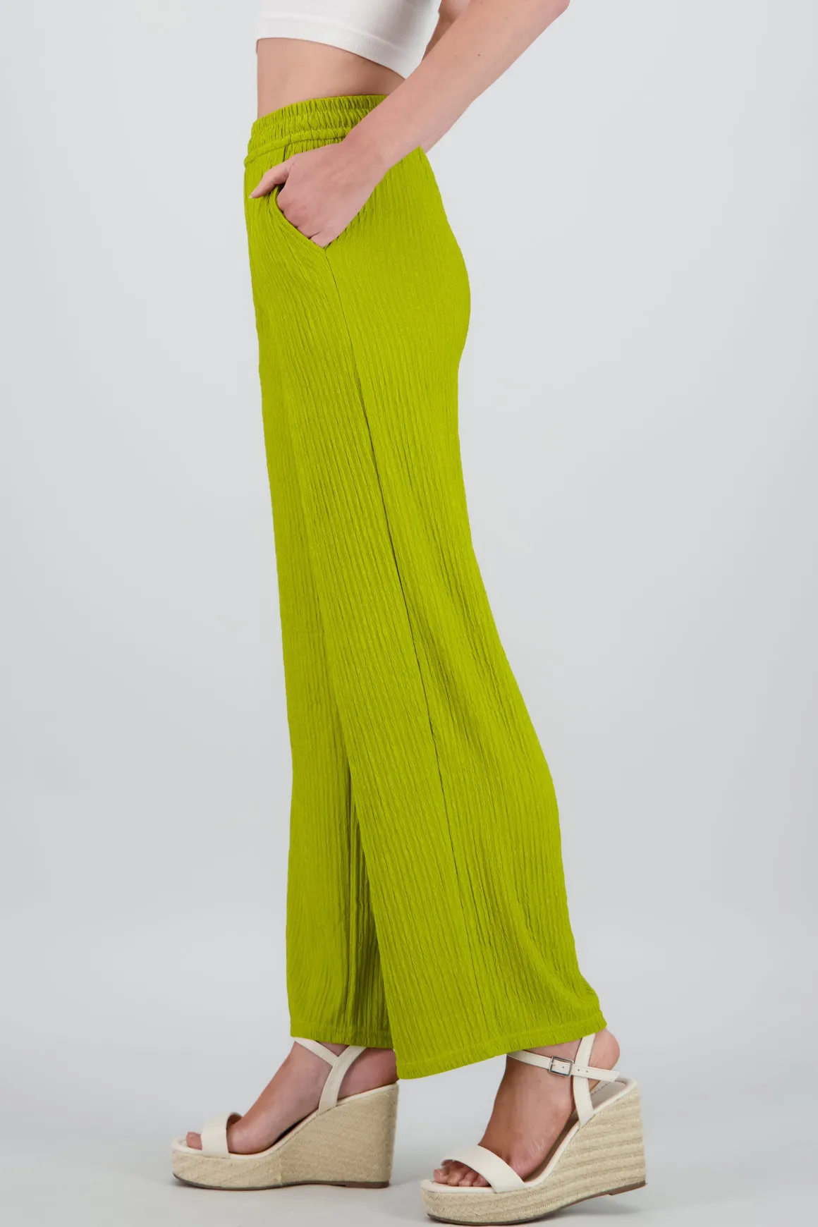 ¡Este pantalón es lo que necesitas para darle un giro único a tu look! Con su estilo wide y la textura bandana, es perfecto para crear outfits con mucho estilo. Ideal para cualquier ocasión donde quieras destacar.