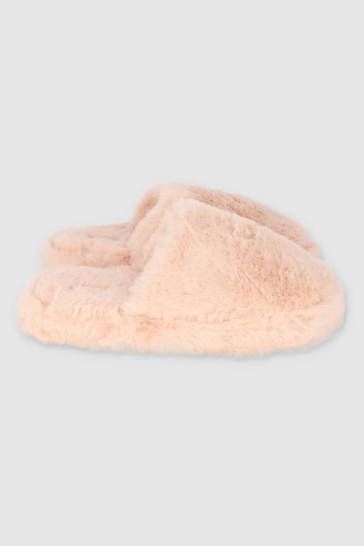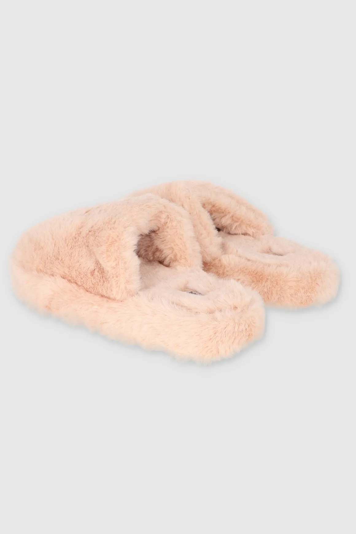 Pantuflas en tejido de peluche. Las suelas rígidas proporcionan soporte, mientras que el forro en tejido suave mantiene tus pies cómodos y cálidos.