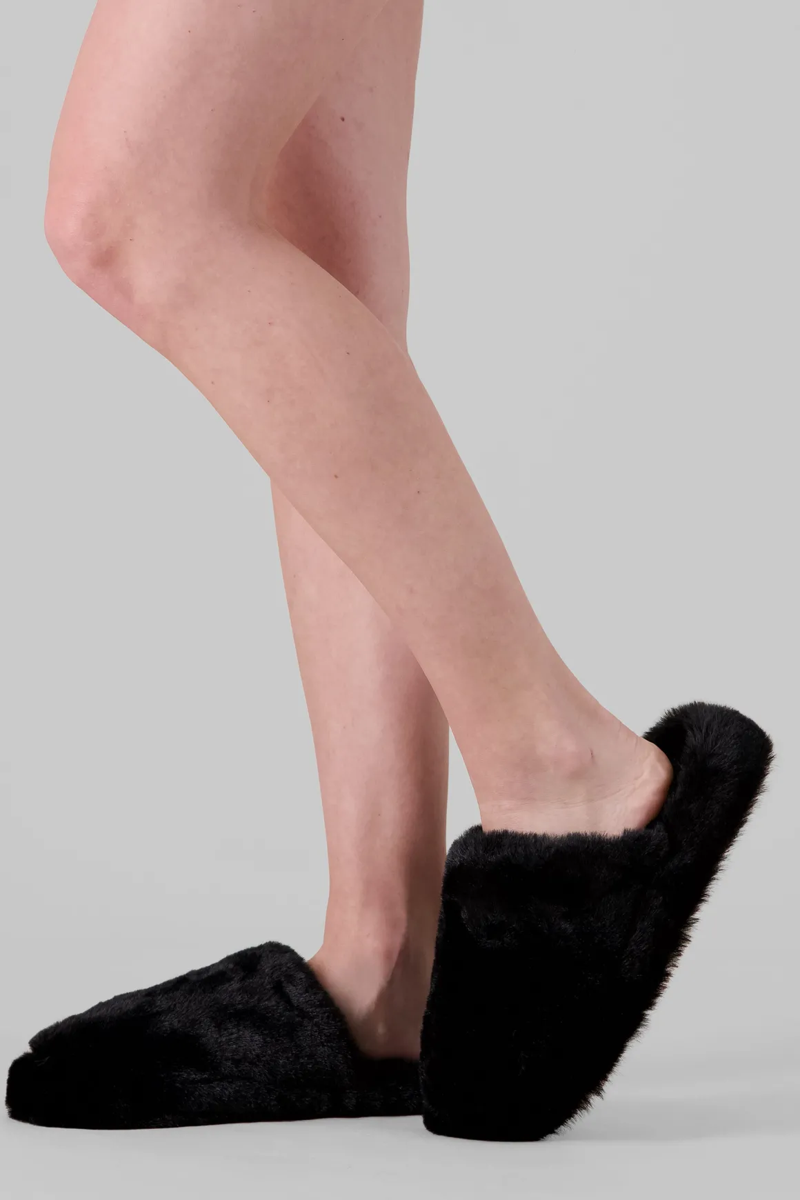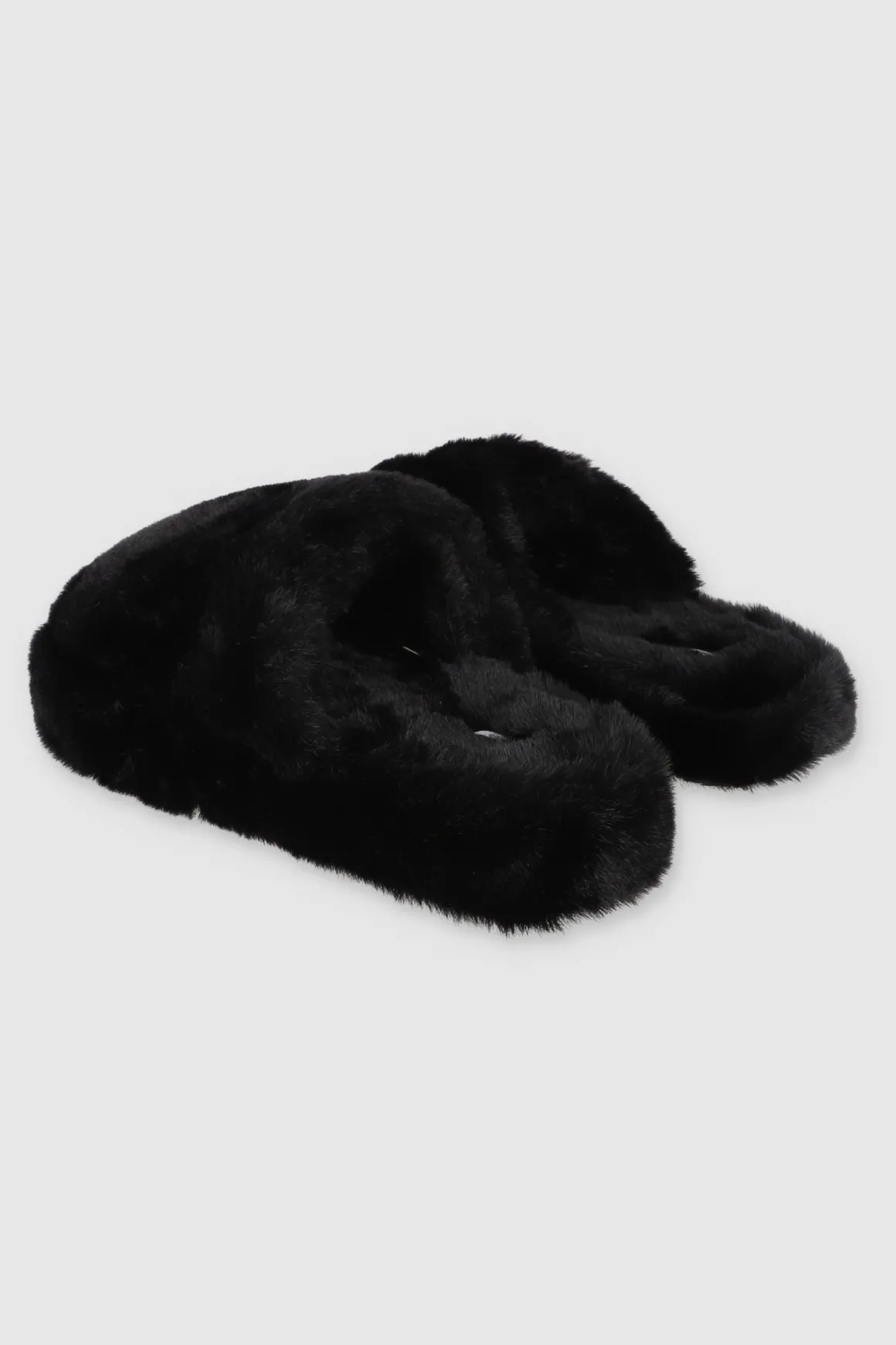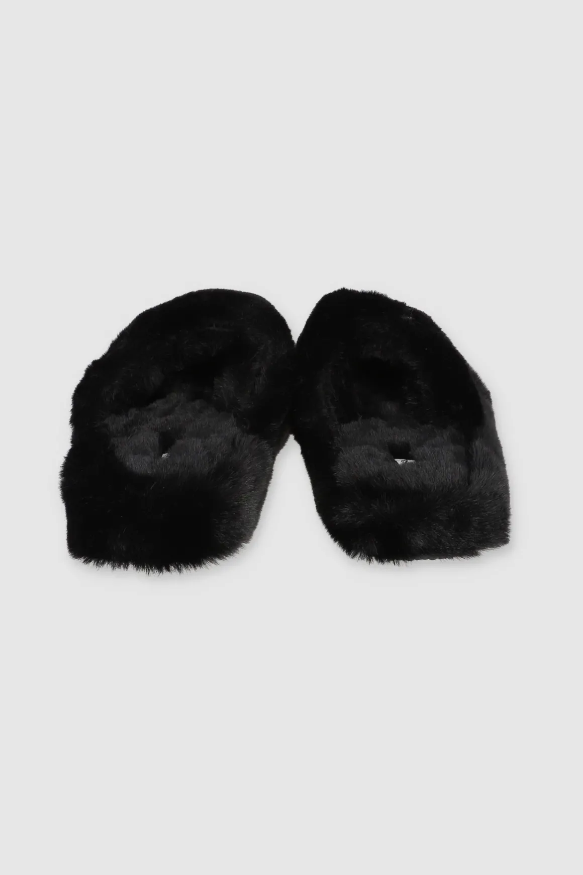 Pantuflas en tejido de peluche. Las suelas rígidas proporcionan soporte, mientras que el forro en tejido suave mantiene tus pies cómodos y cálidos.
