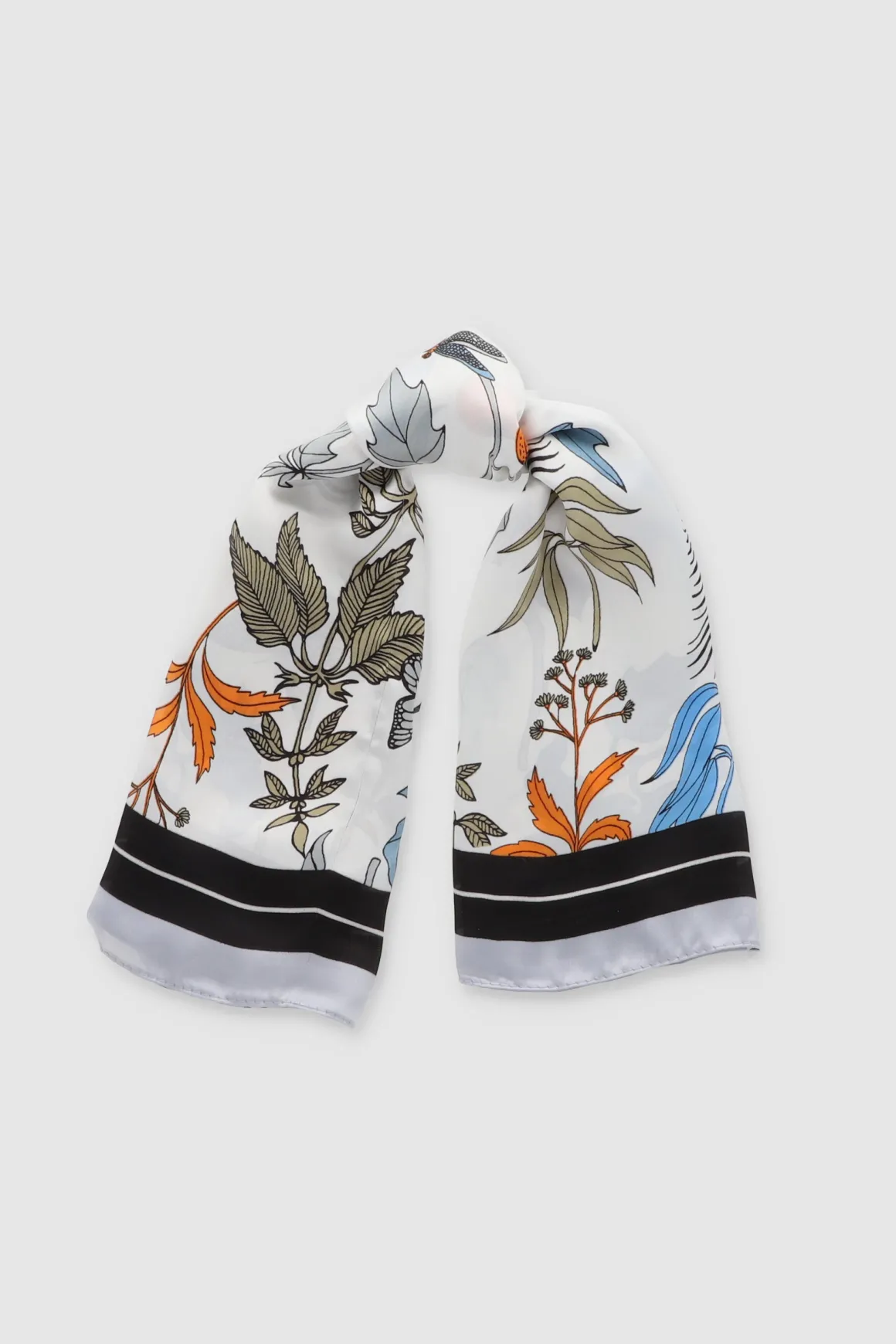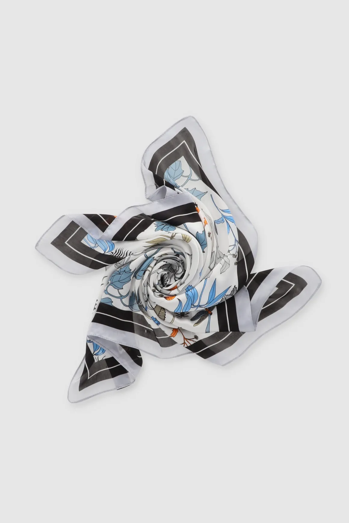 Pañuelo con estampado de flores. Acabado satín. Bordes multicolor.