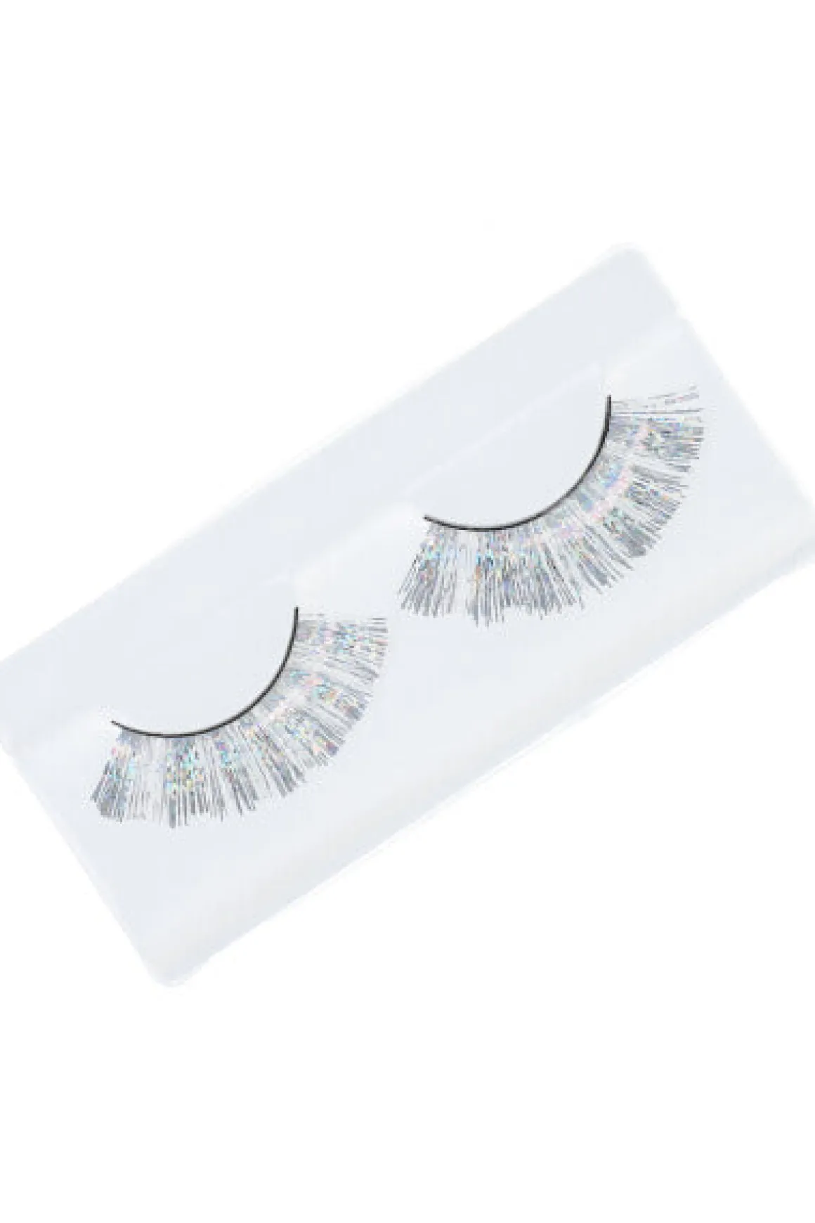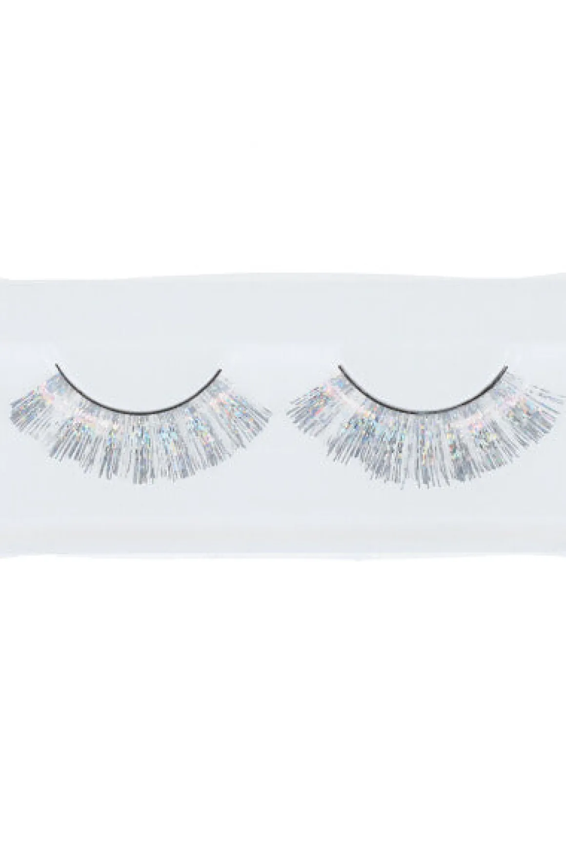 Par de pestañas postizas enteras de volumen alto con largo moderado con aplicación de brillo. Contiene banda elástica trasparente para su aplicación.