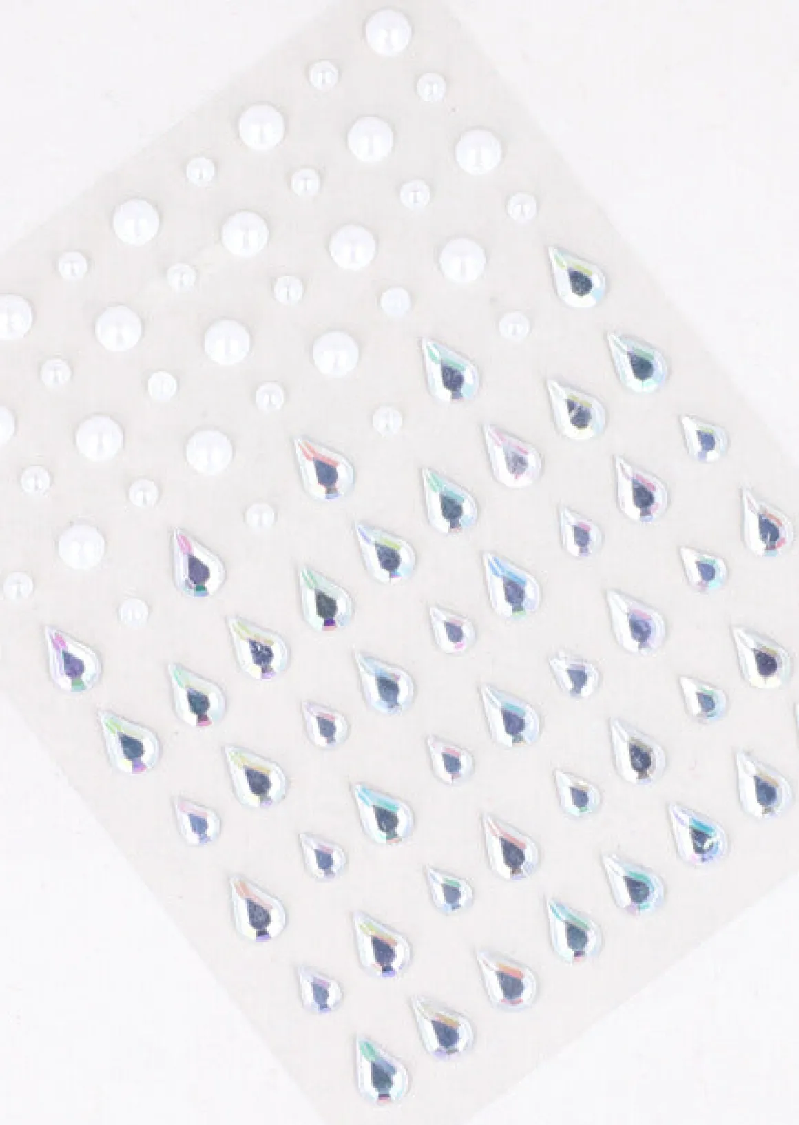 Plantilla de brillos mixta autoadheribles con forma de gota y perlas.