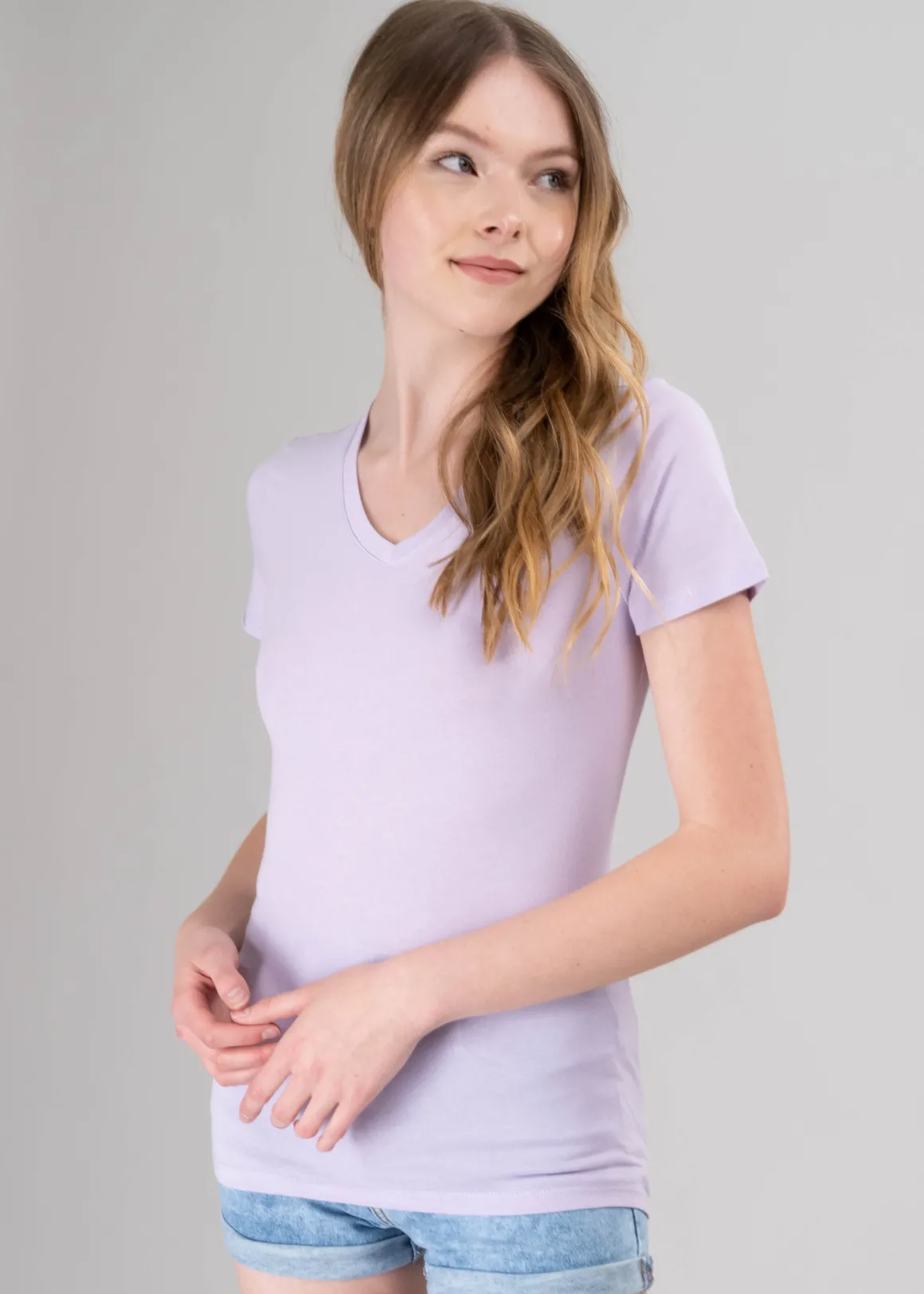 Playera de manga corta con escote v en color sólido.