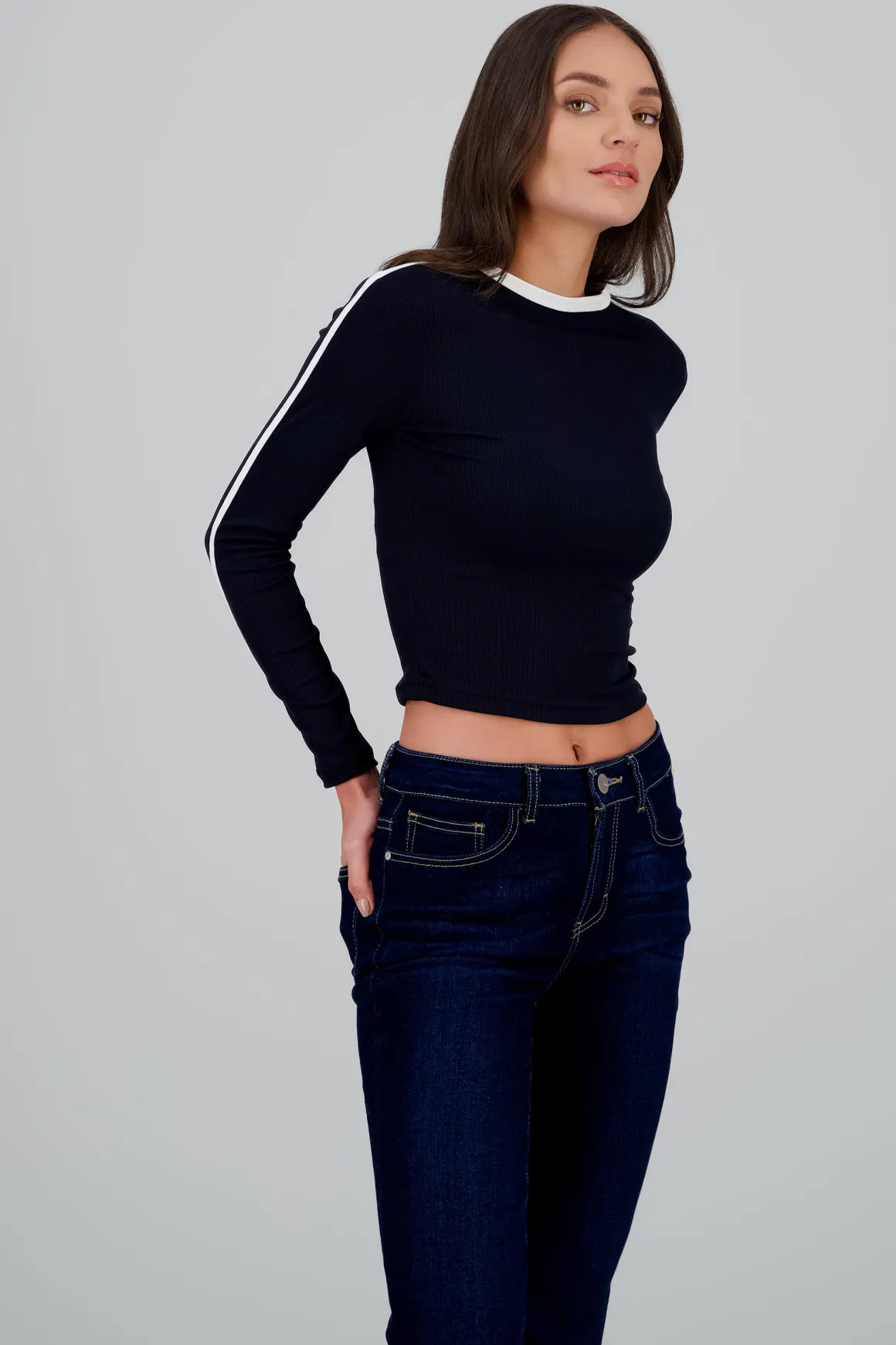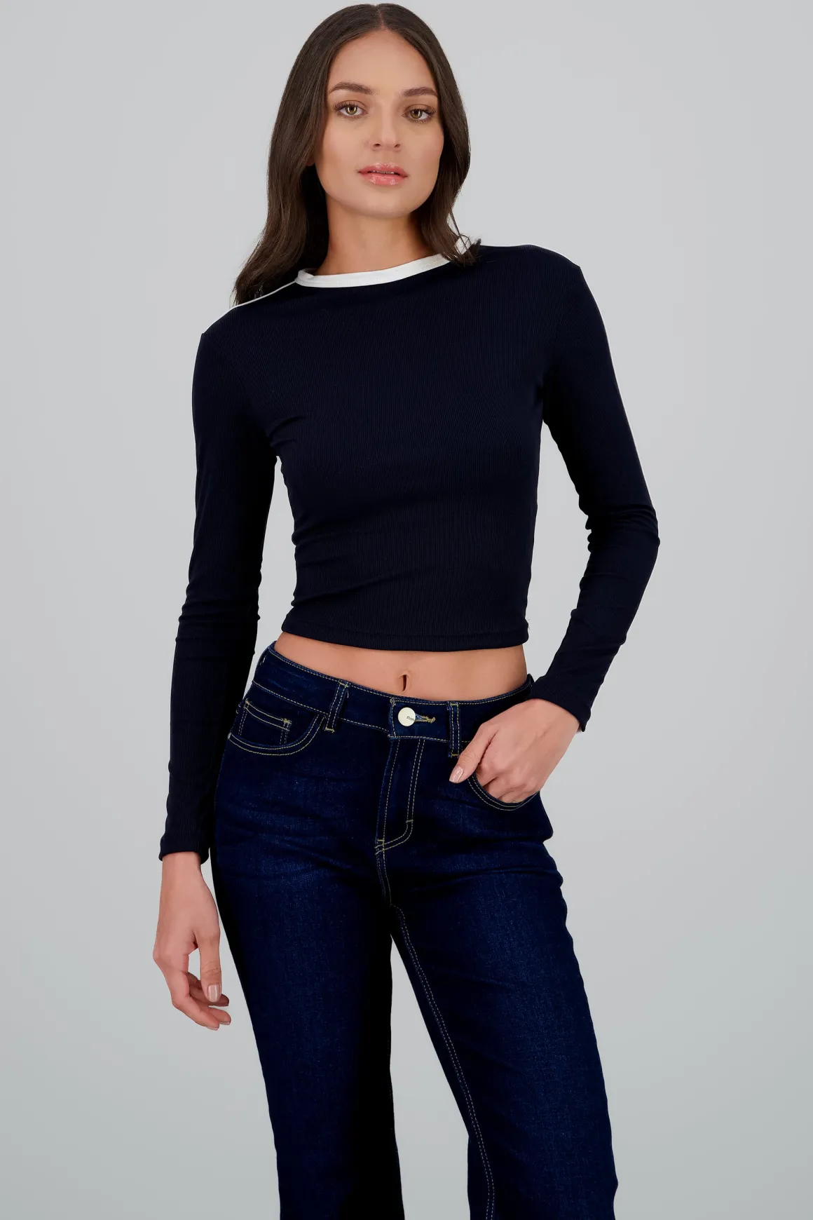 - Manga larga para un estilo versátil en distintas temporadas.