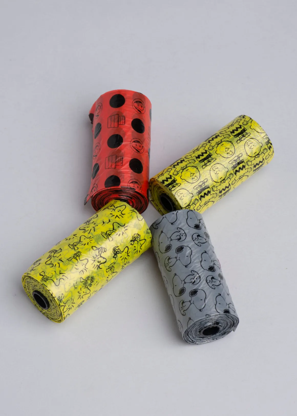 Este set de repuestos de bolsas para mascota con diseños de Peanuts es perfecto para los paseos.