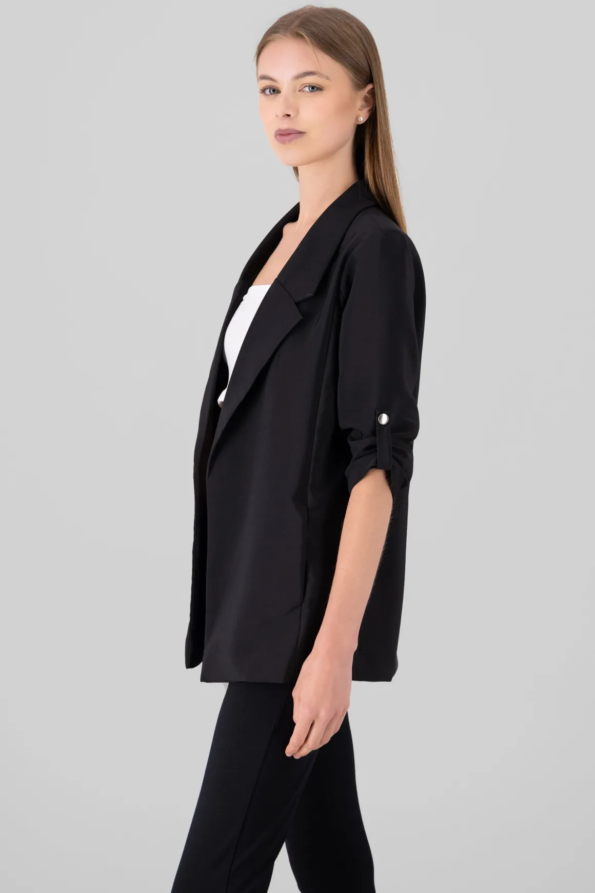 ¡Añade un toque trendy y moderno con este saco liso! Los elevadores en las mangas aportan un diseño distintivo.