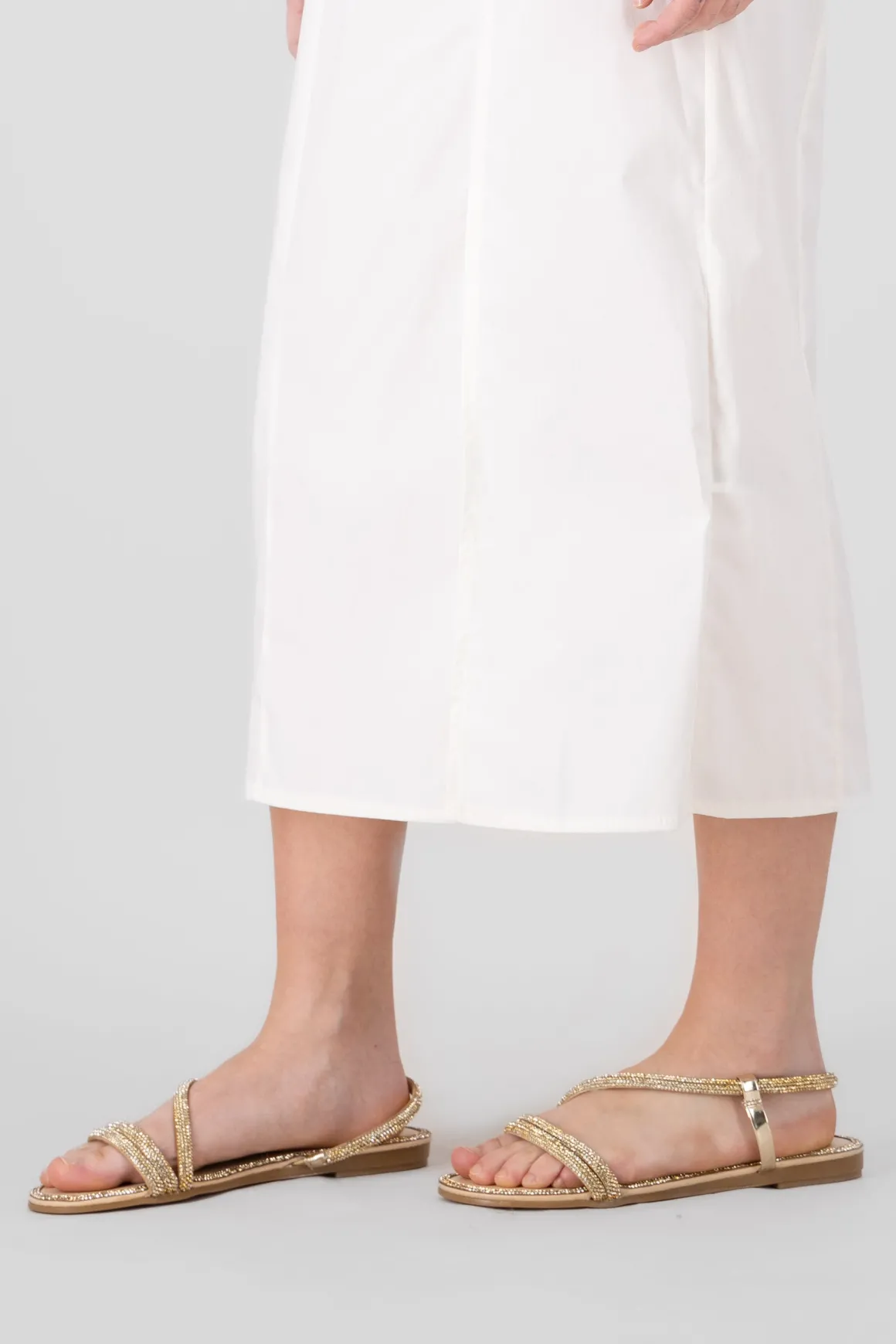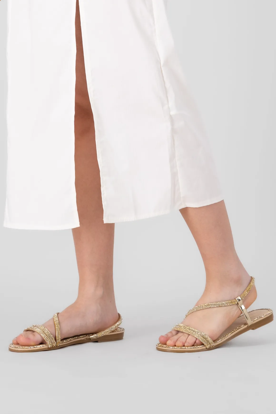 Estas sandalias planas son la opción perfecta para darle un toque brillante a tu look. Con bordes decorados y cintas superiores que se cruzan en diagonal, estas sandalias no solo son cómodas, sino que también añaden un toque de glamour a cualquier outfit.
