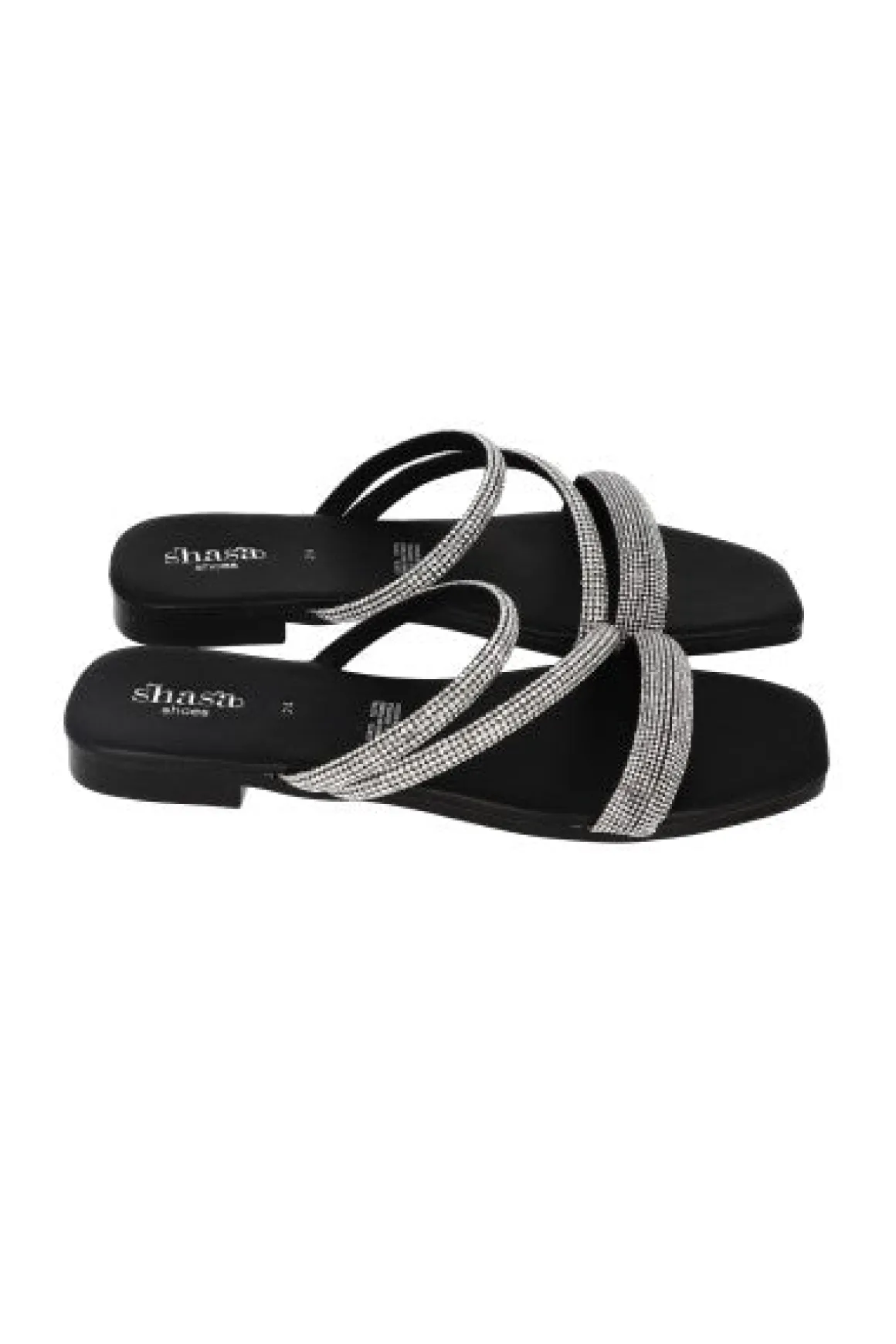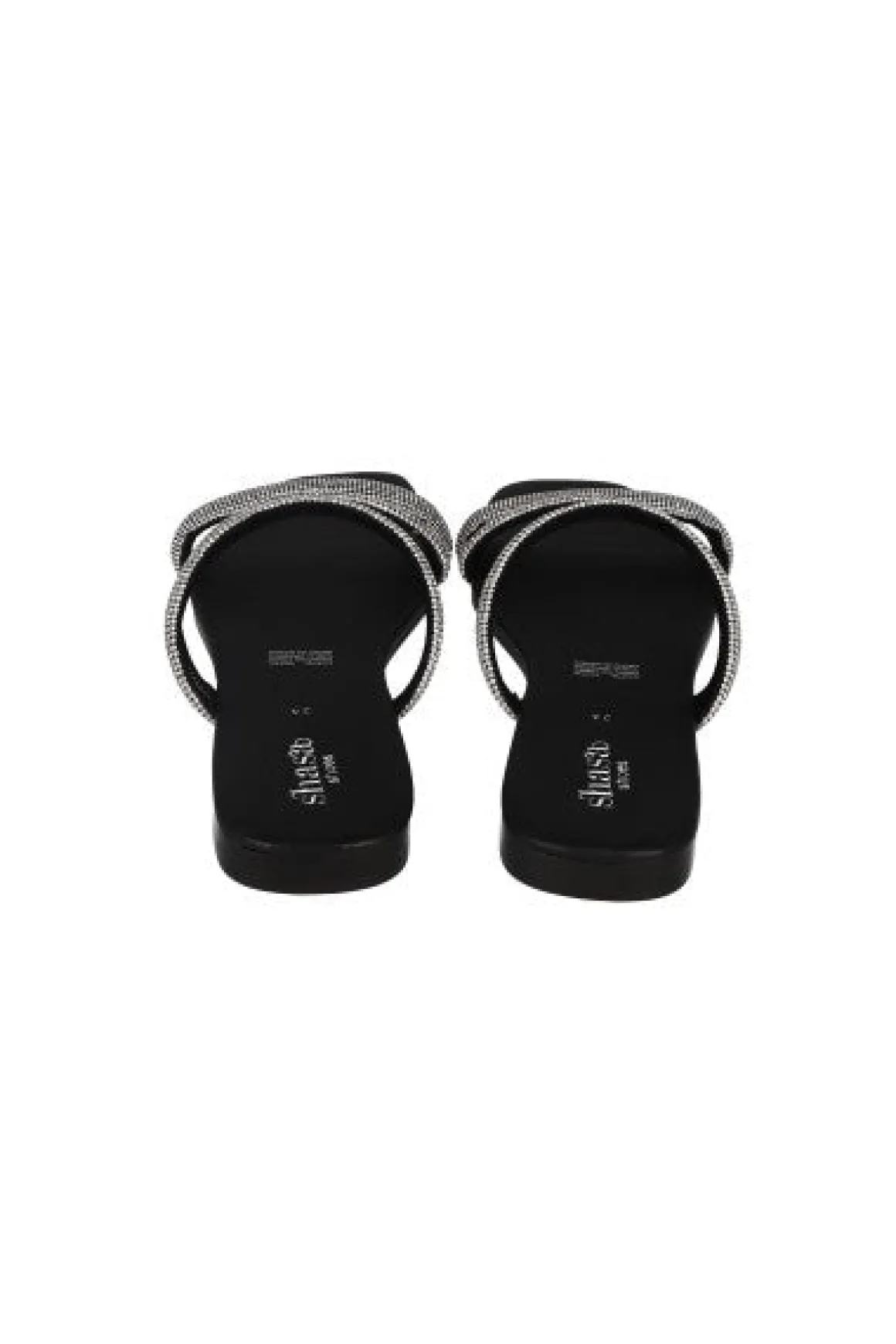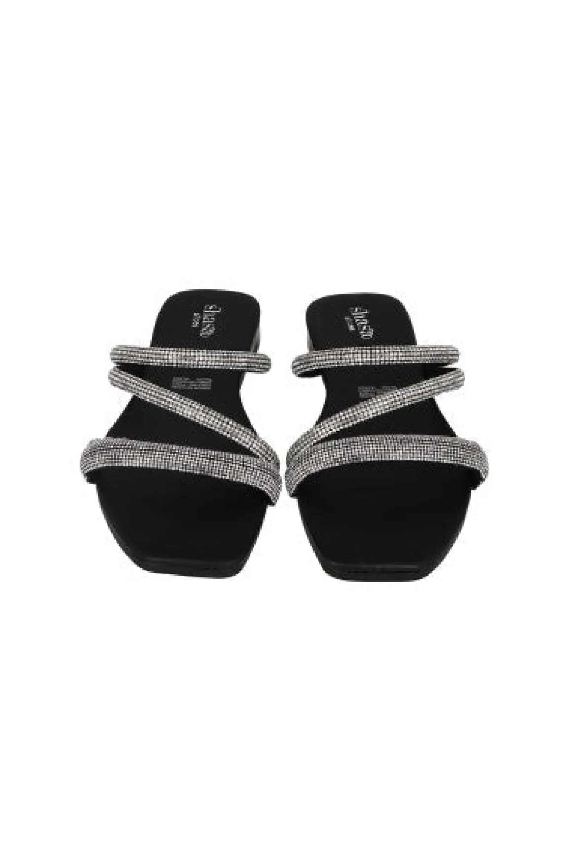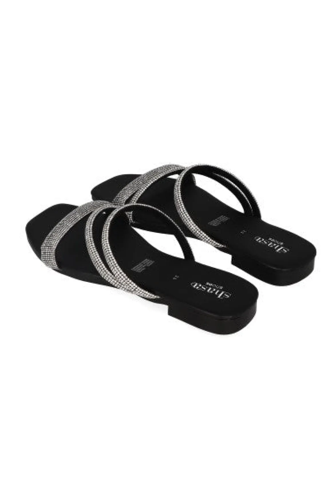 Sandalia plana de tiras cruzadas con aplicación de multi brillos en empiene.