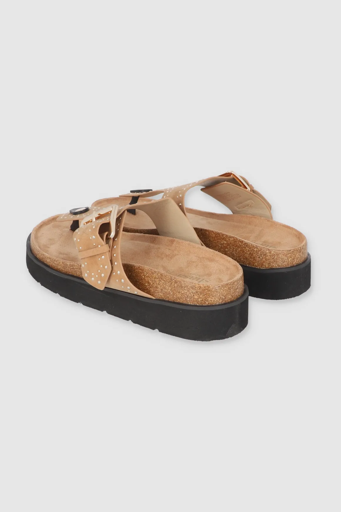 ¡Atrévete a brillar con nuestras sandalias pata de gallo! Diseñadas para destacar, estas sandalias cuentan con una suela gruesa con un toque de corcho que les da un estilo natural y moderno. Las cintas superiores anchas están decoradas con brillos y una hebilla, añadiendo un detalle chic a tu look. Perfectas para combinar con tus outfits veraniegos y darles ese toque especial que buscas. No te pierdas la oportunidad de hacerte con este par imprescindible.