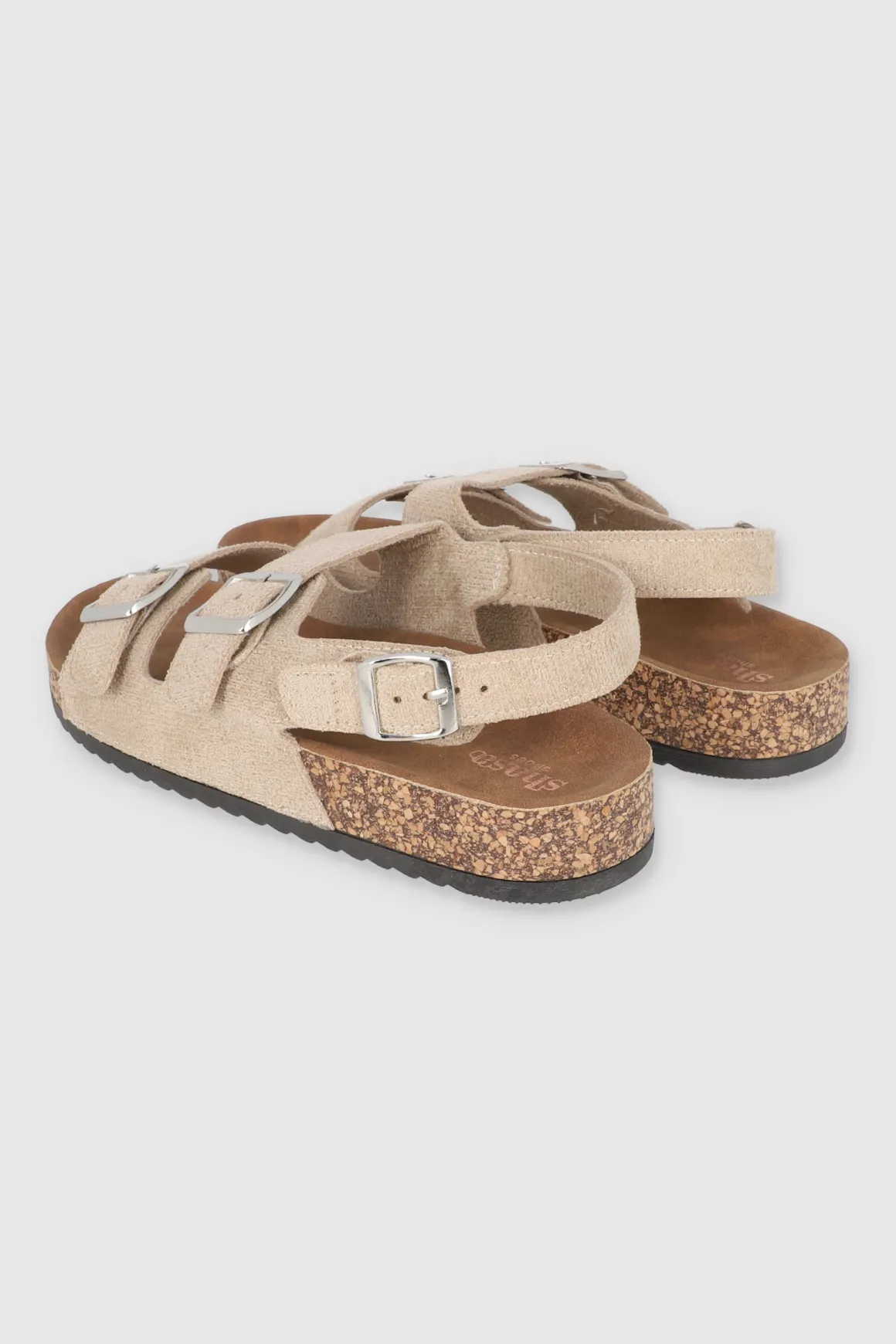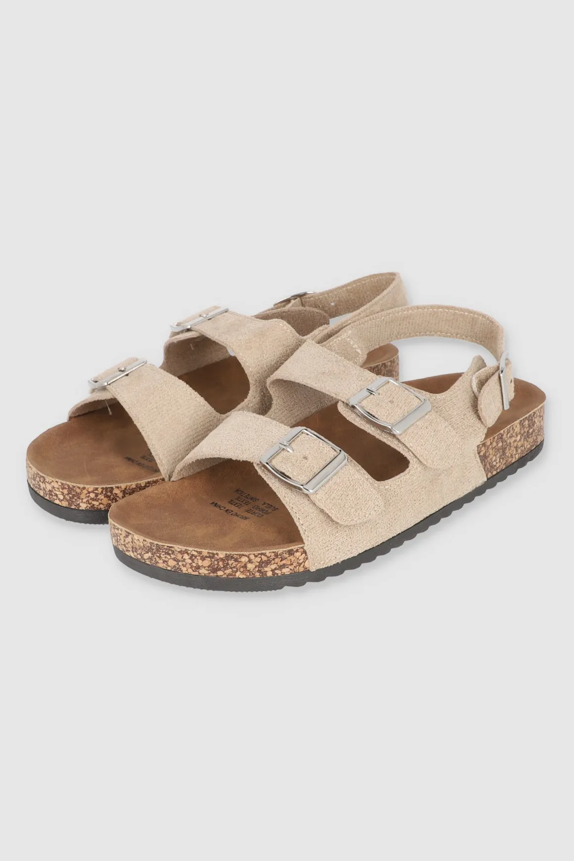 Comodidad y estilo se fusionan en estas sandalias de suela de corcho. Las tiras superiores ajustables con hebillas crean el equilibrio ideal entre funcionalidad y moda para esos días de paseo.