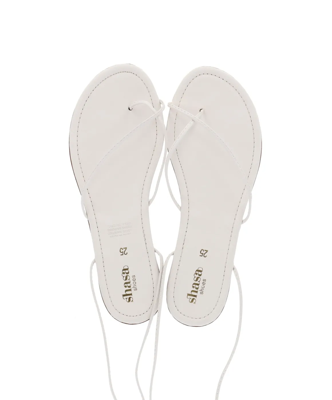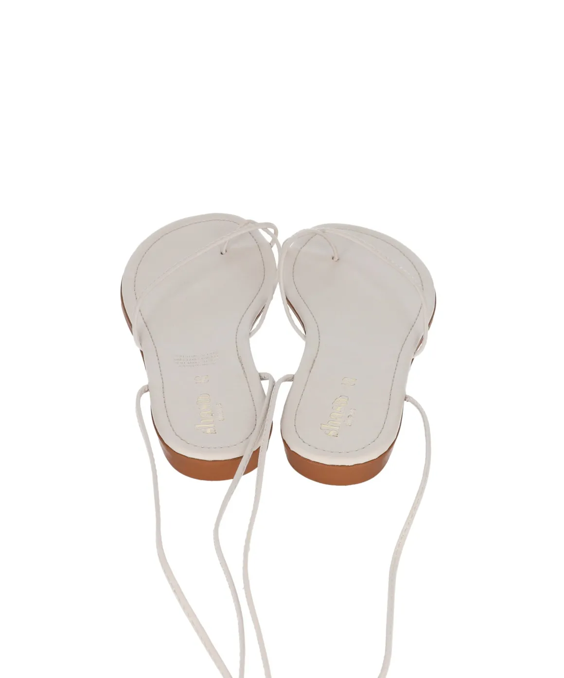 Sandalias con punta redonda y cintas lace up en tobillo. Cintas finas en parte frontal con anillo en dedo.