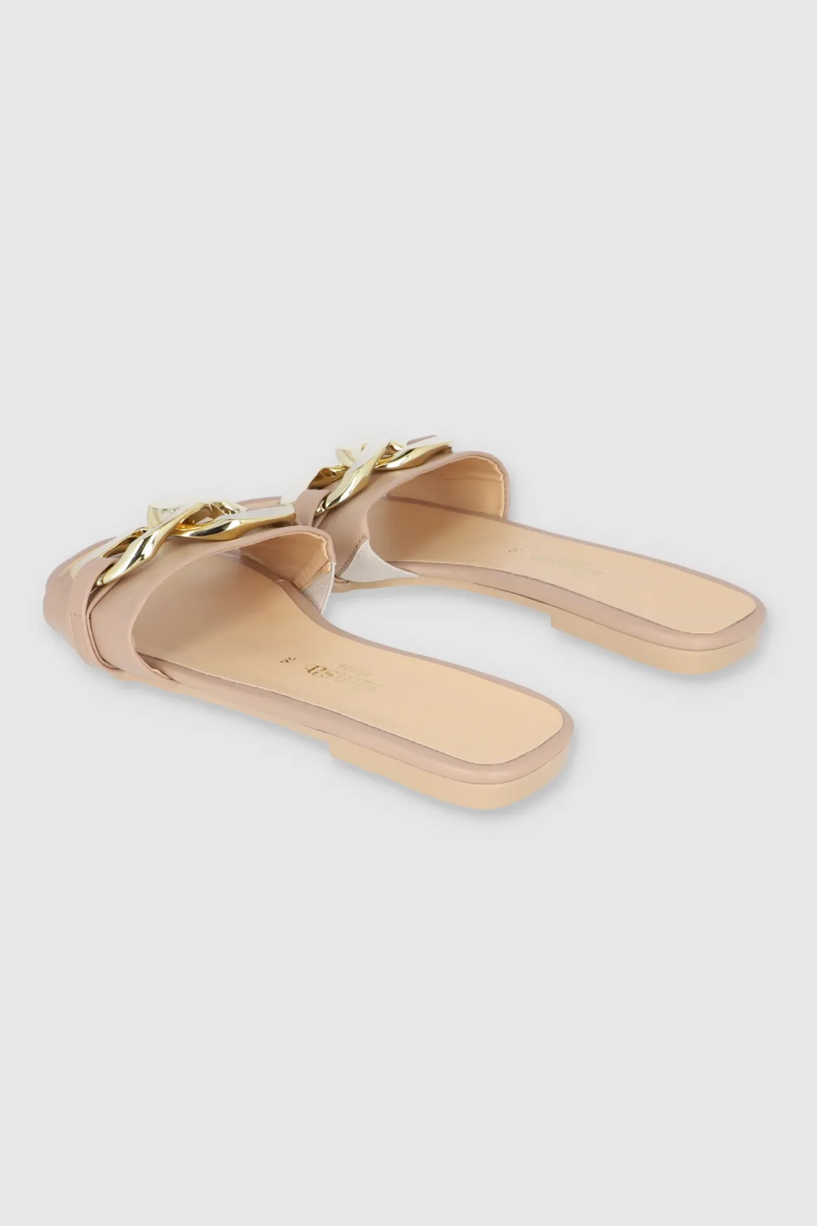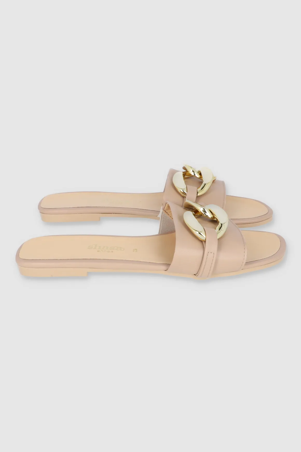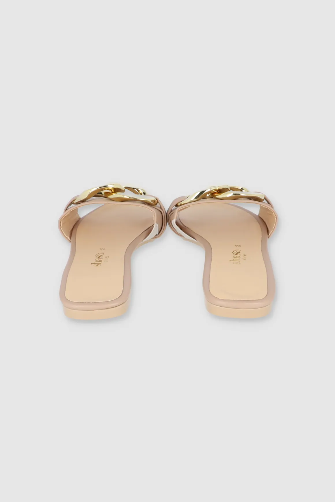Estas sandalias tipo mula son perfectas para complementar cualquier look casual con su diseño moderno de eslabones.