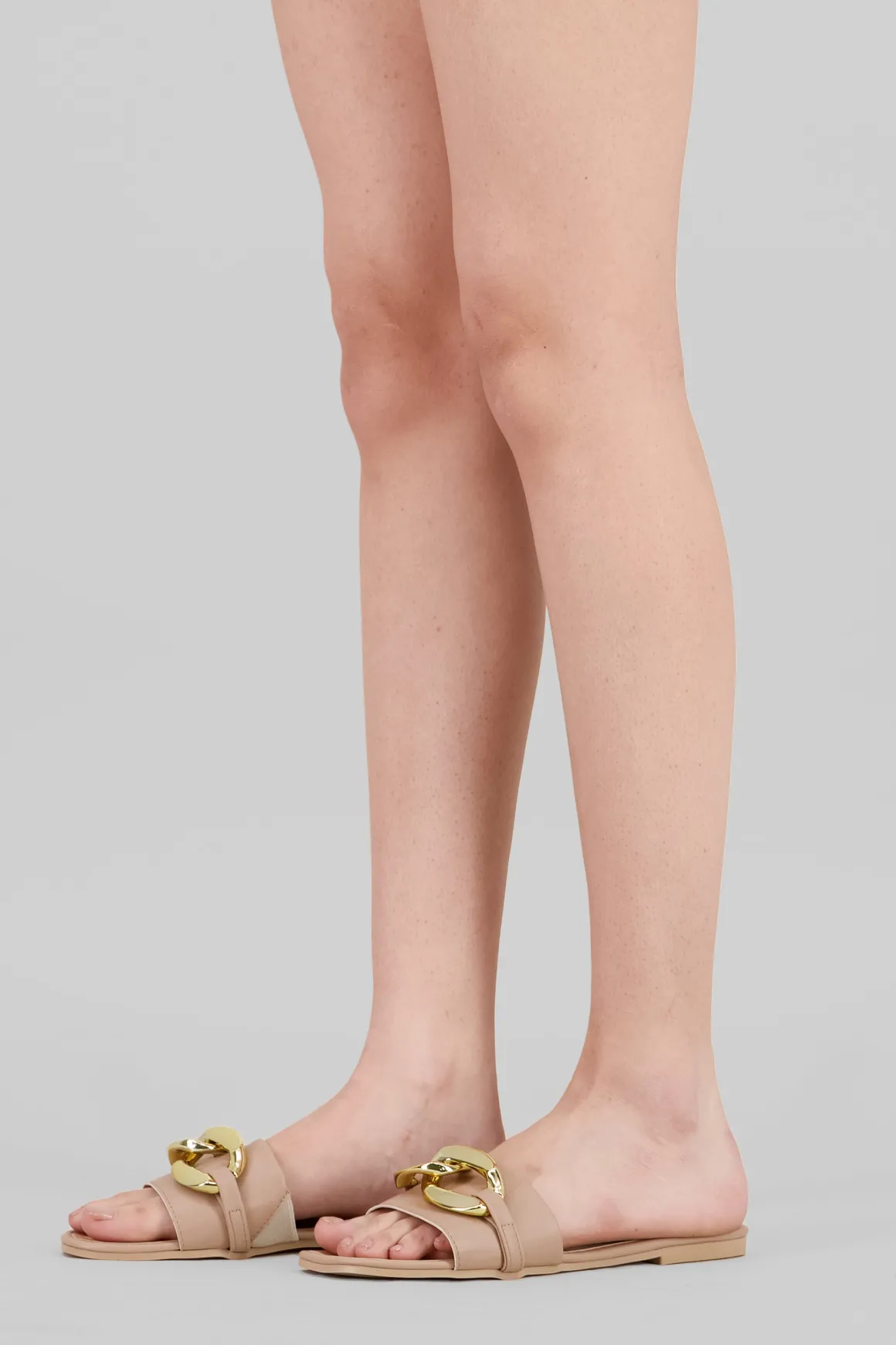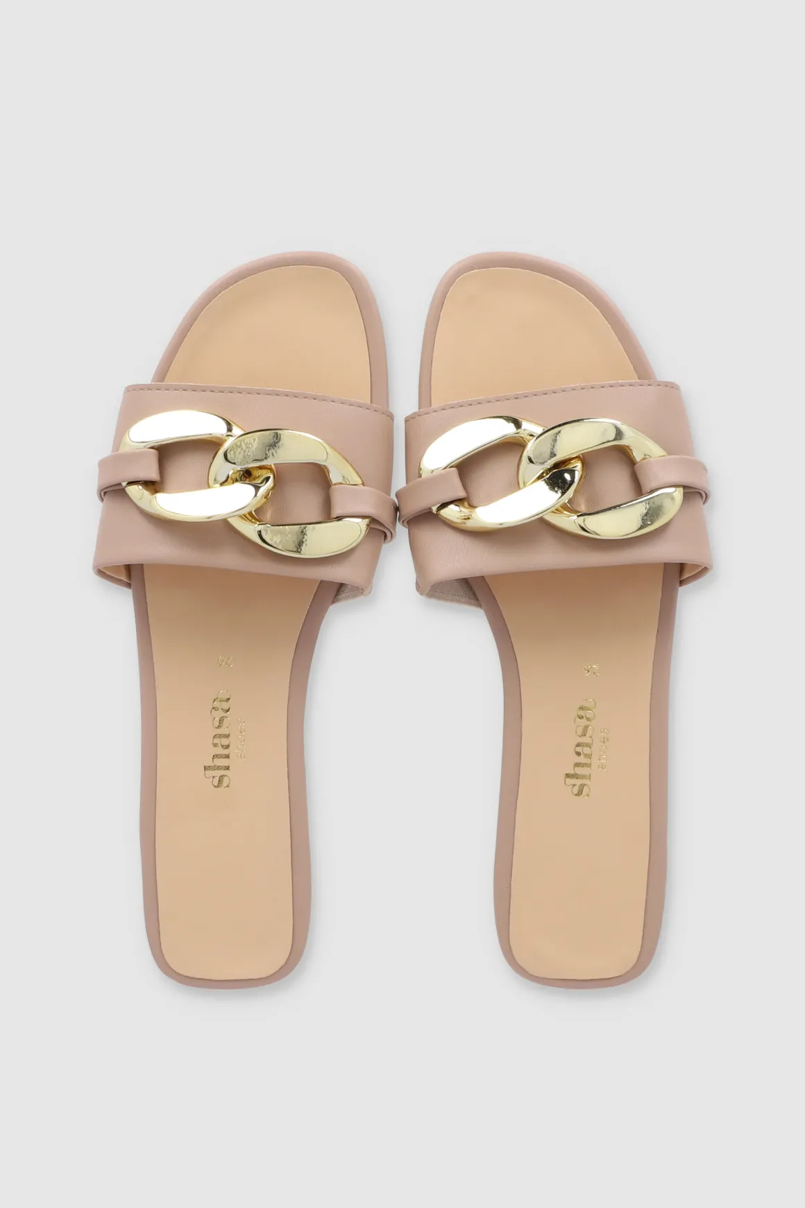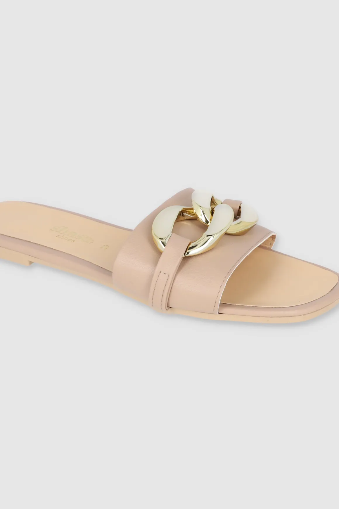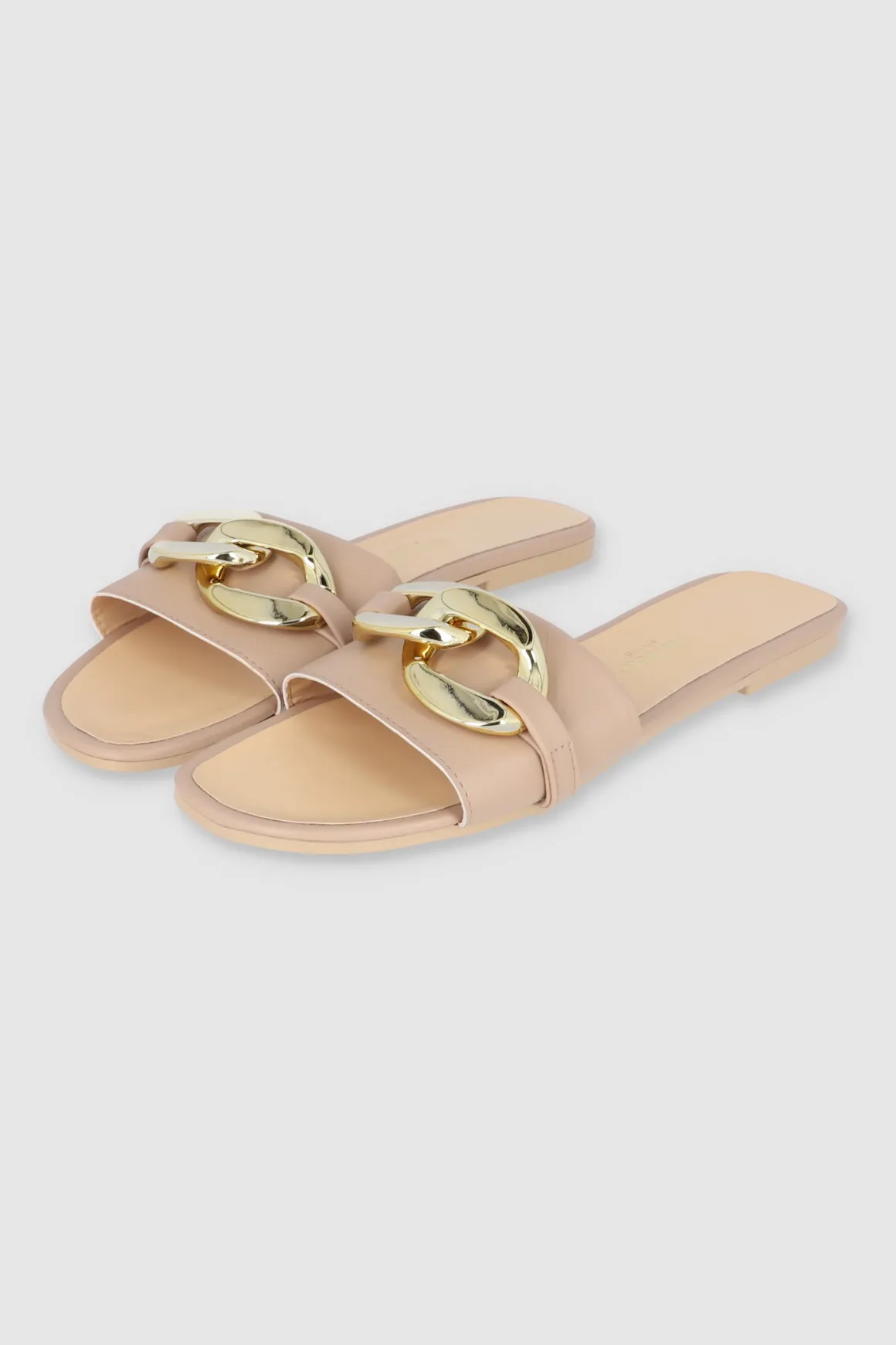 Estas sandalias tipo mula son perfectas para complementar cualquier look casual con su diseño moderno de eslabones.