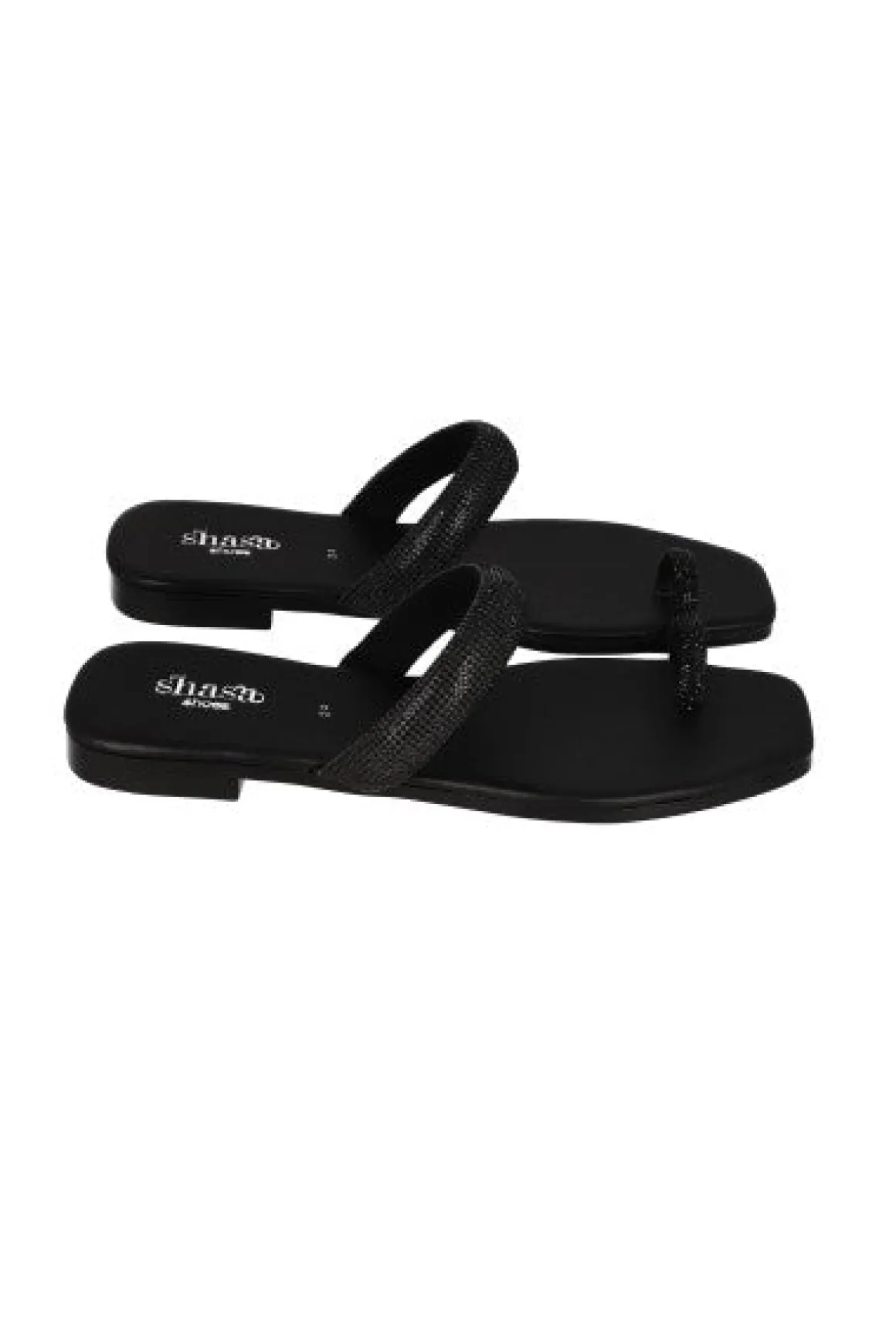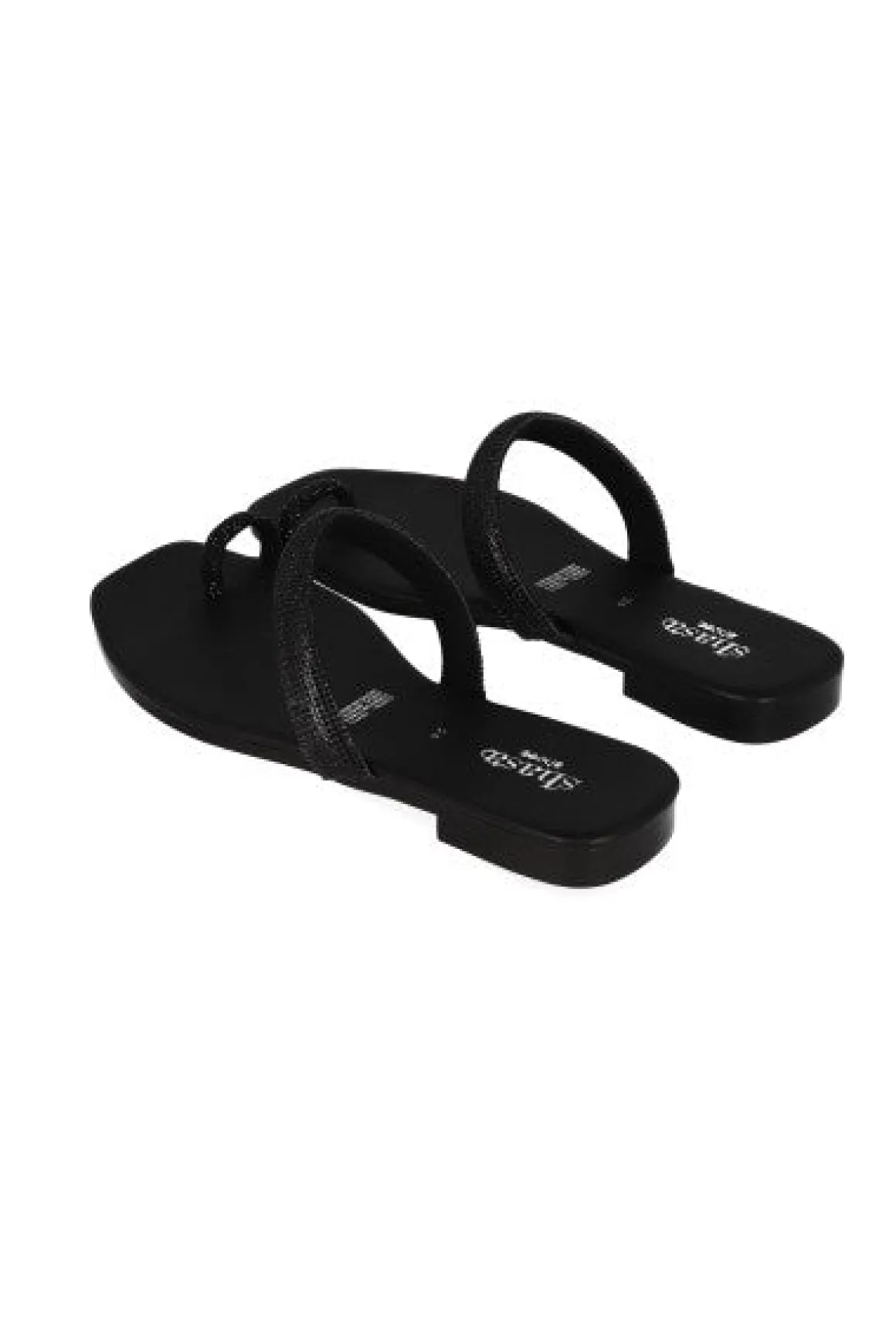 Sandalias pala con punta cuadrada. Tira frontal y anillo para dedo con aplicación de brillos.