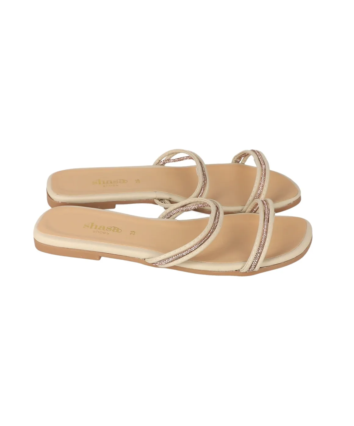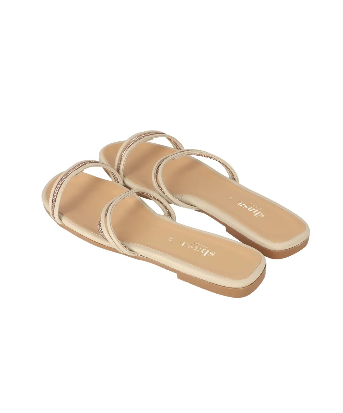 Sandalia pala de cintas delgadas con aplicación de brillos en empeine.