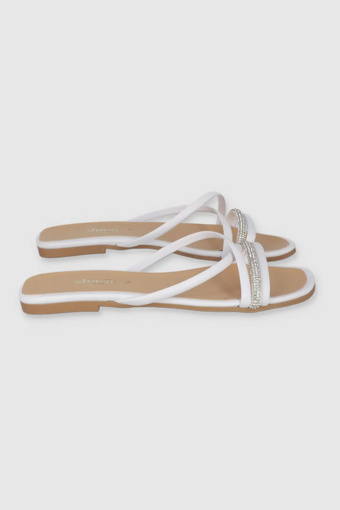 ¡Eleva tu estilo con nuestras sandalias planas de cintas cruzadas! Perfectas para un look fresco y moderno, estas sandalias son ideales para cualquier ocasión, desde un paseo casual hasta una salida nocturna con amigas. Las cintas delgadas superiores, decoradas con brillantes, añaden un toque de glamour que no pasará desapercibido.