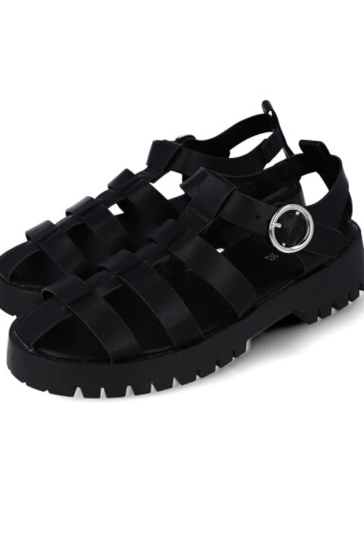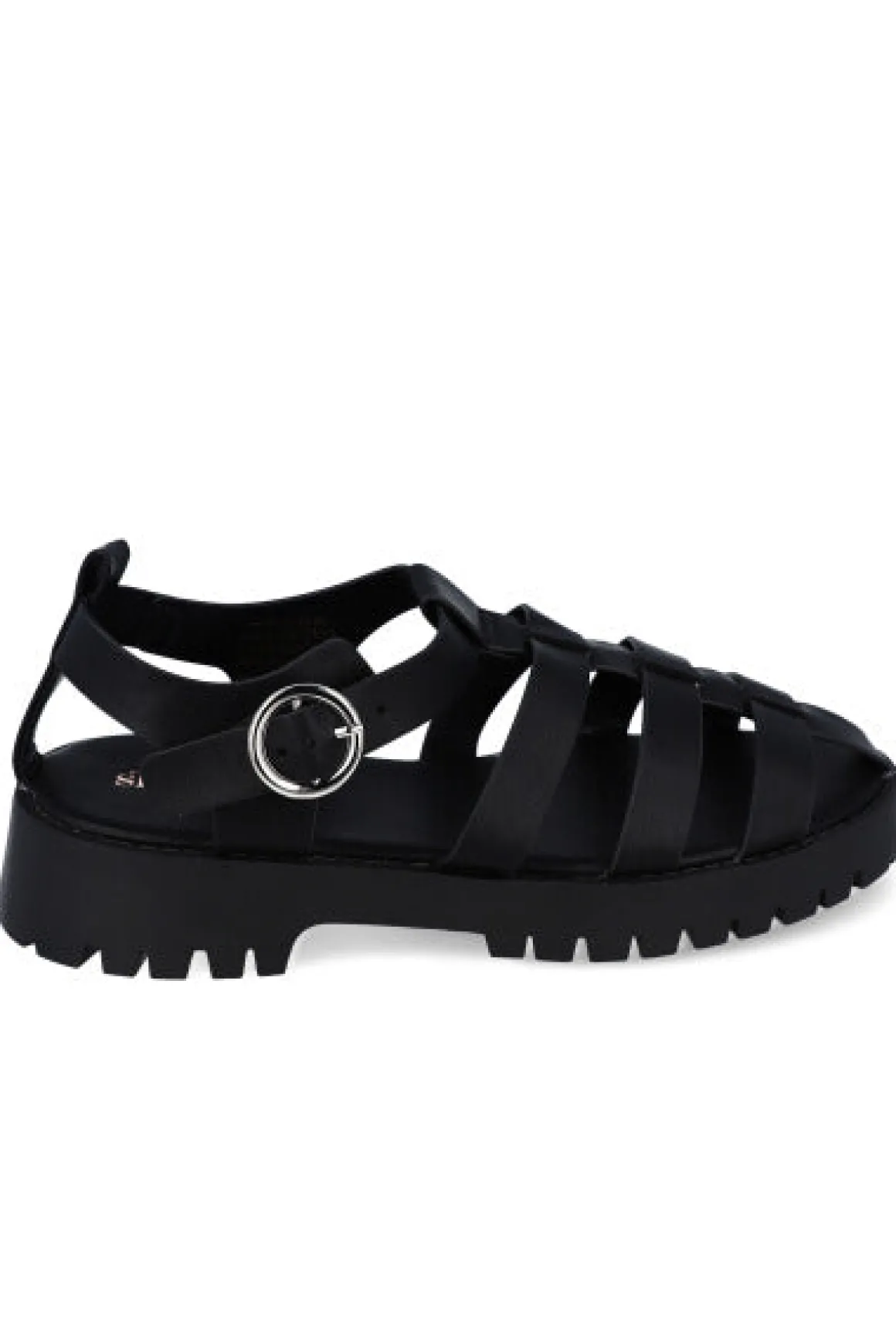 Sandalias cangrejeras monocolor con suela chunky. Cierre lateral mediante hebilla.