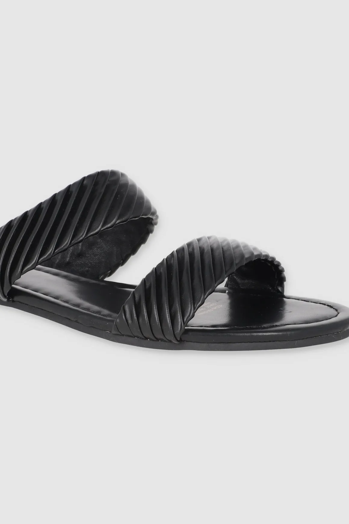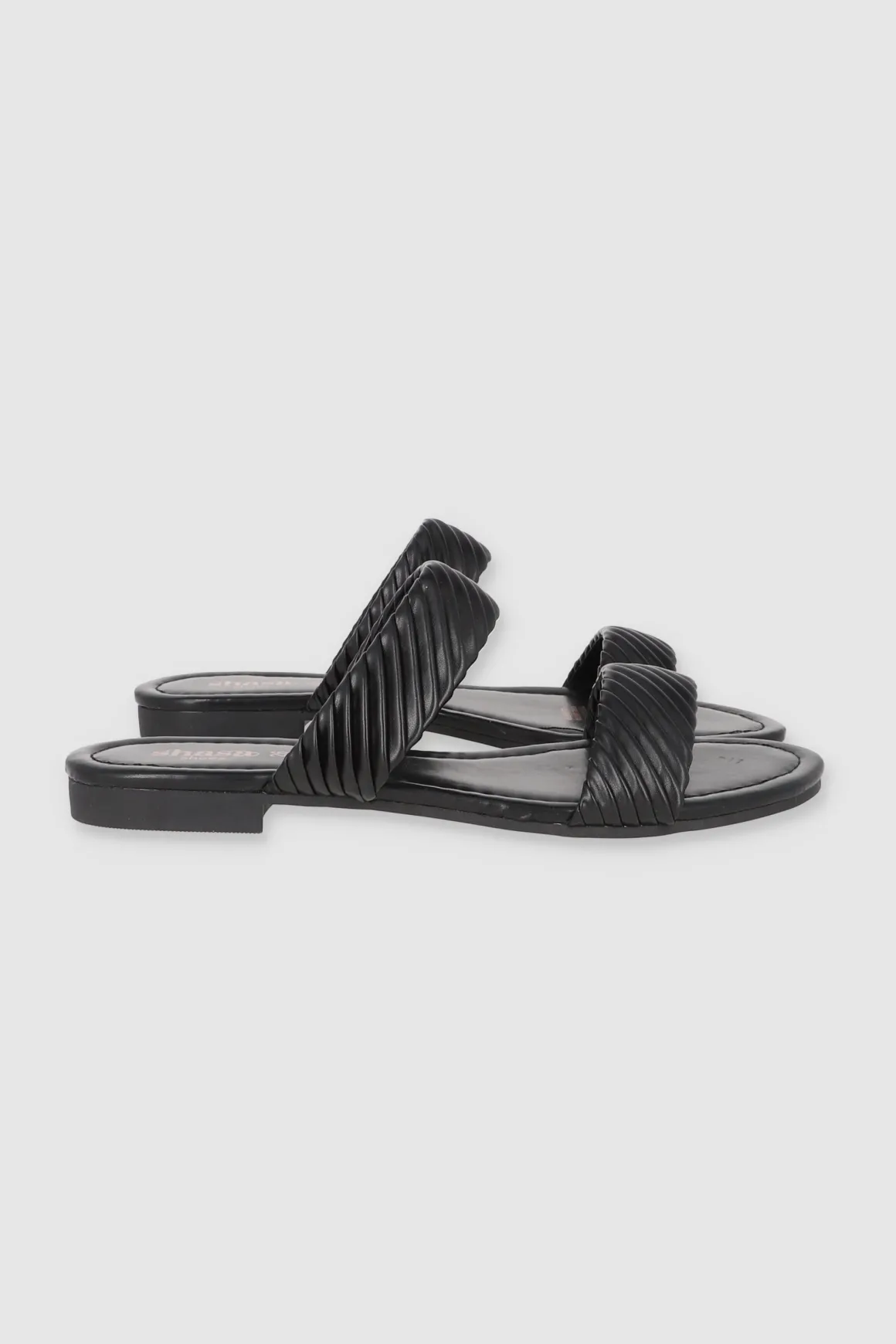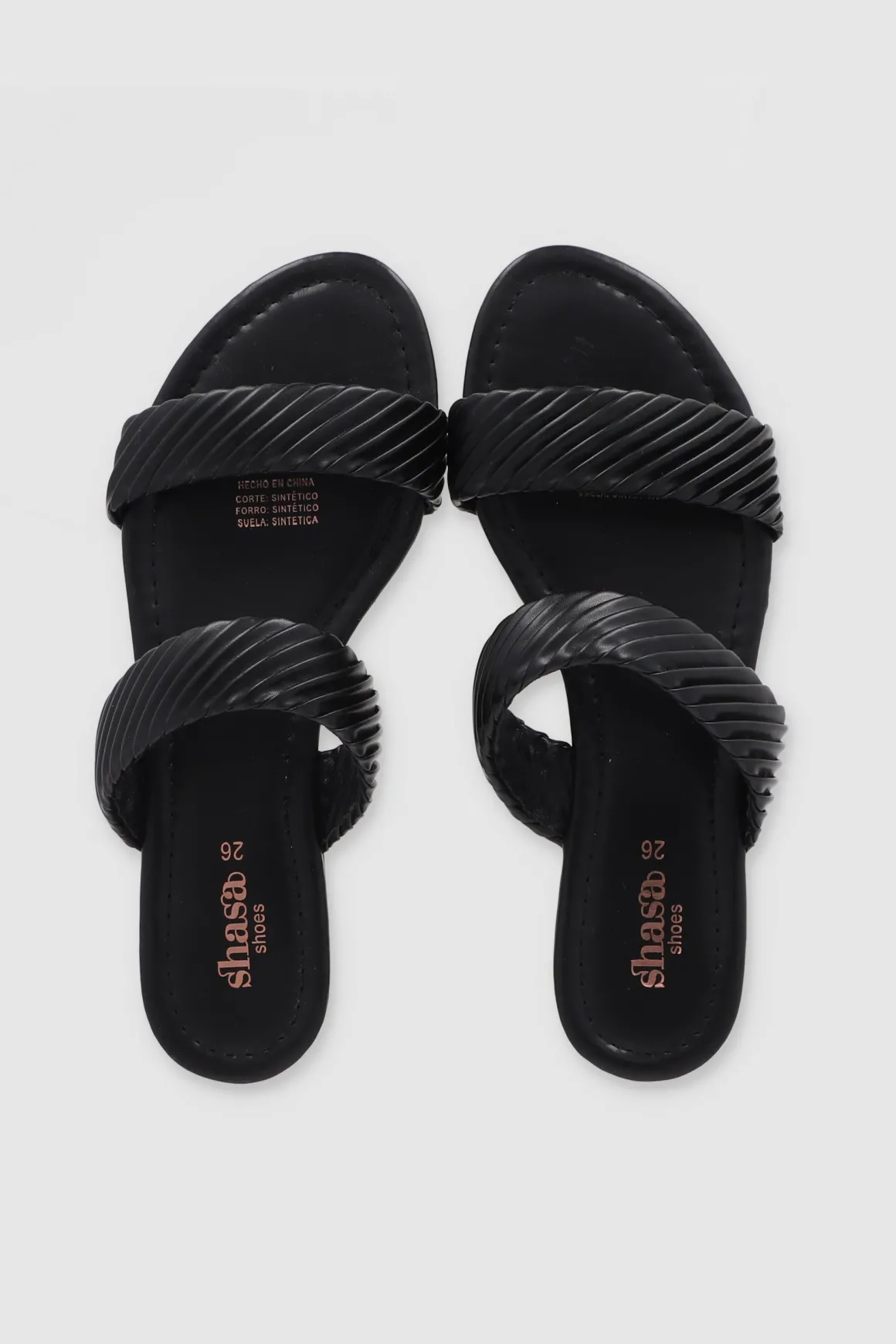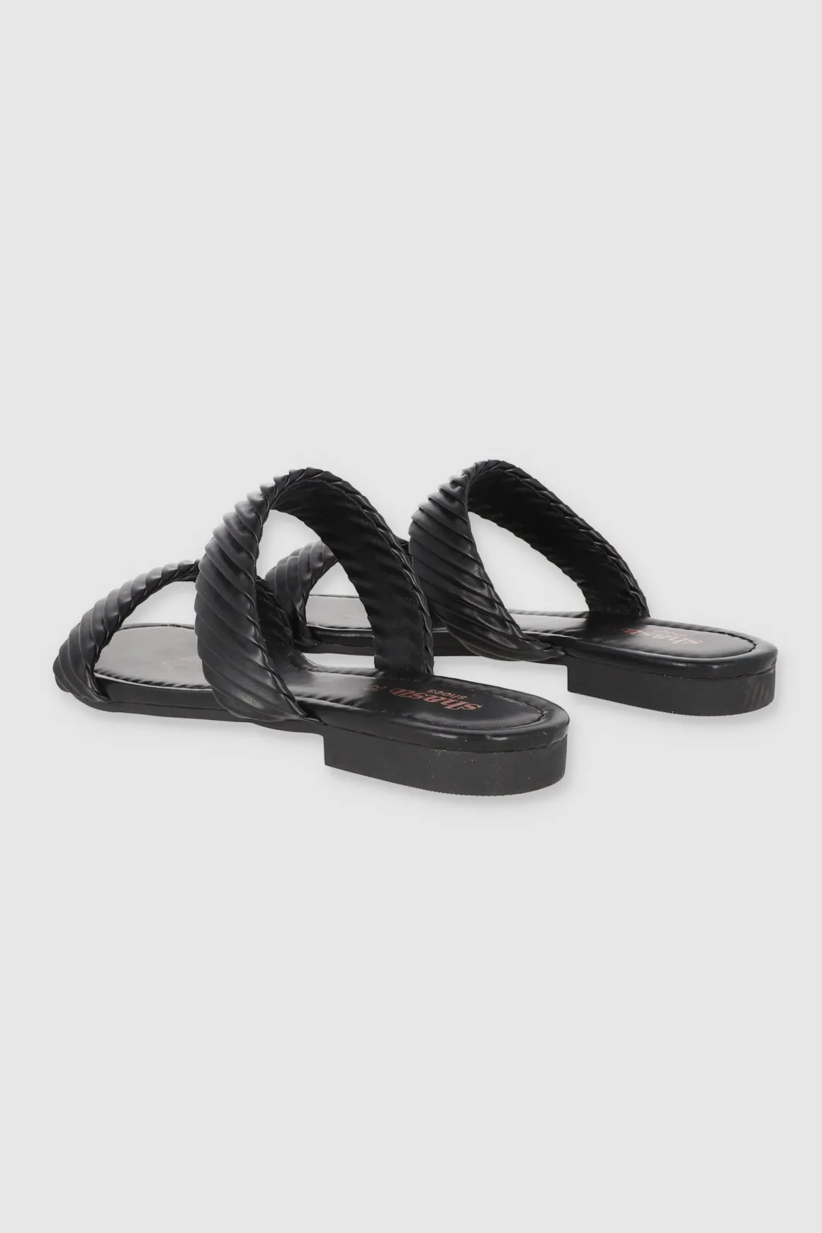 Eleva tu estilo con nuestras sandalias planas, perfectas para cualquier plan. Estas sandalias cuentan con una doble tira superior con una textura de líneas diagonales que le da un toque único y moderno a tu look. Ideales para combinar con jeans, faldas o vestidos, son las aliadas perfectas para tus días más casuales y relajados.