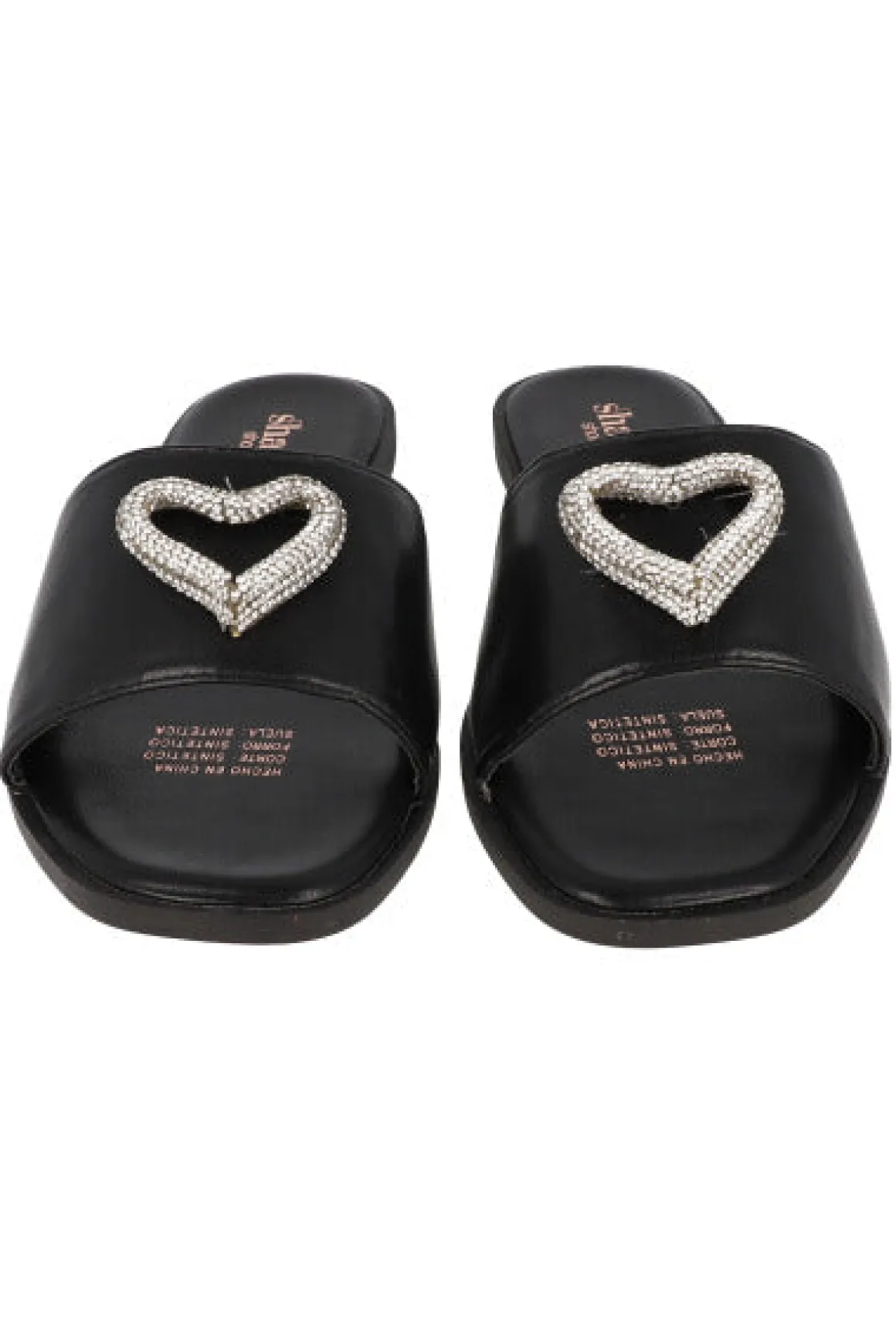 Sandalias pala con punta cuadrada y aplicaciones de corazón metálico.