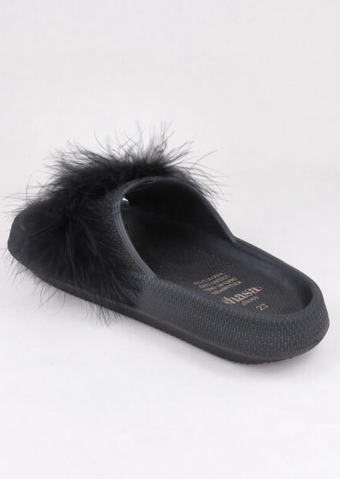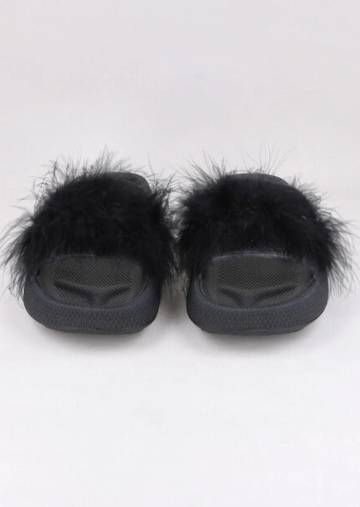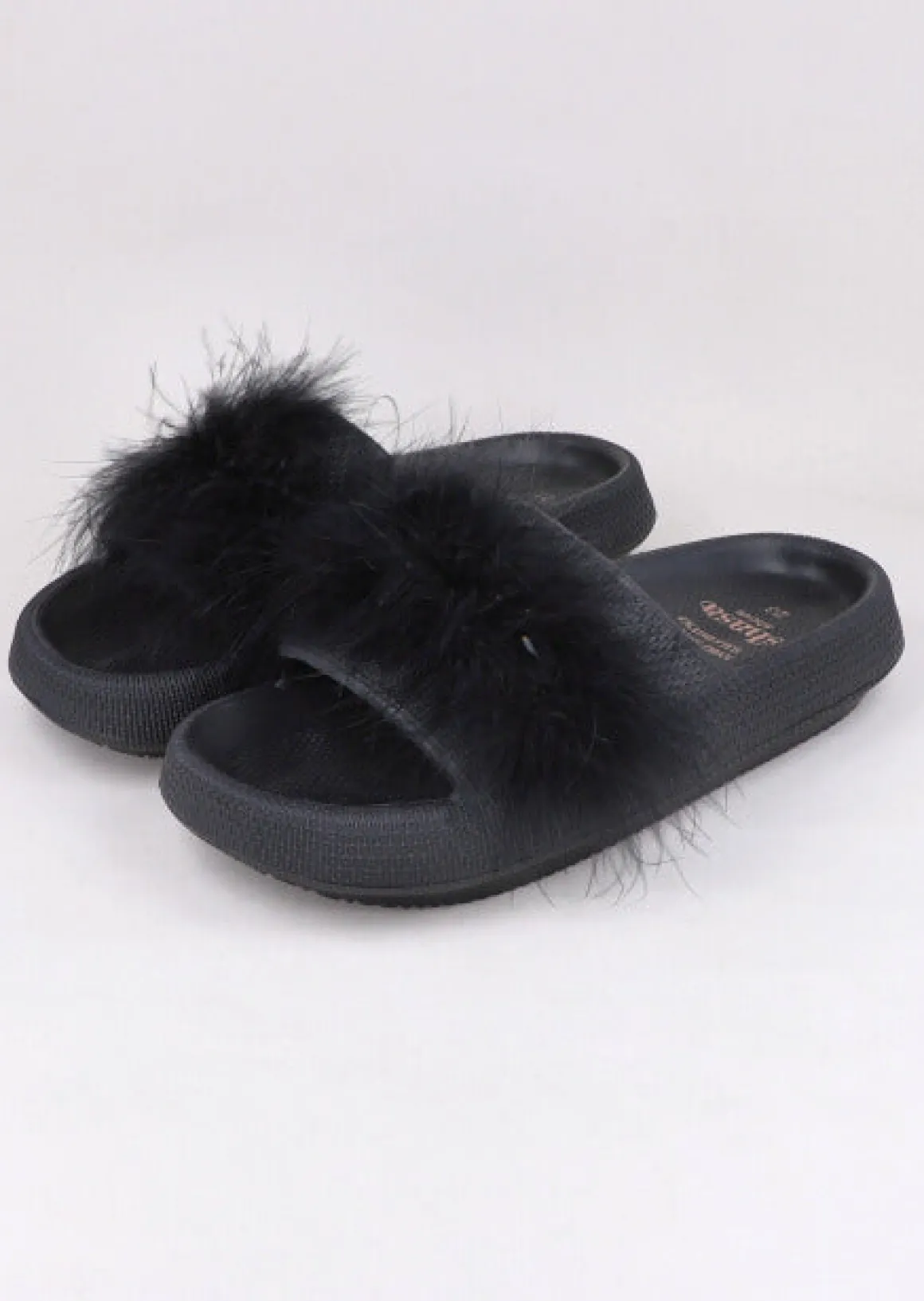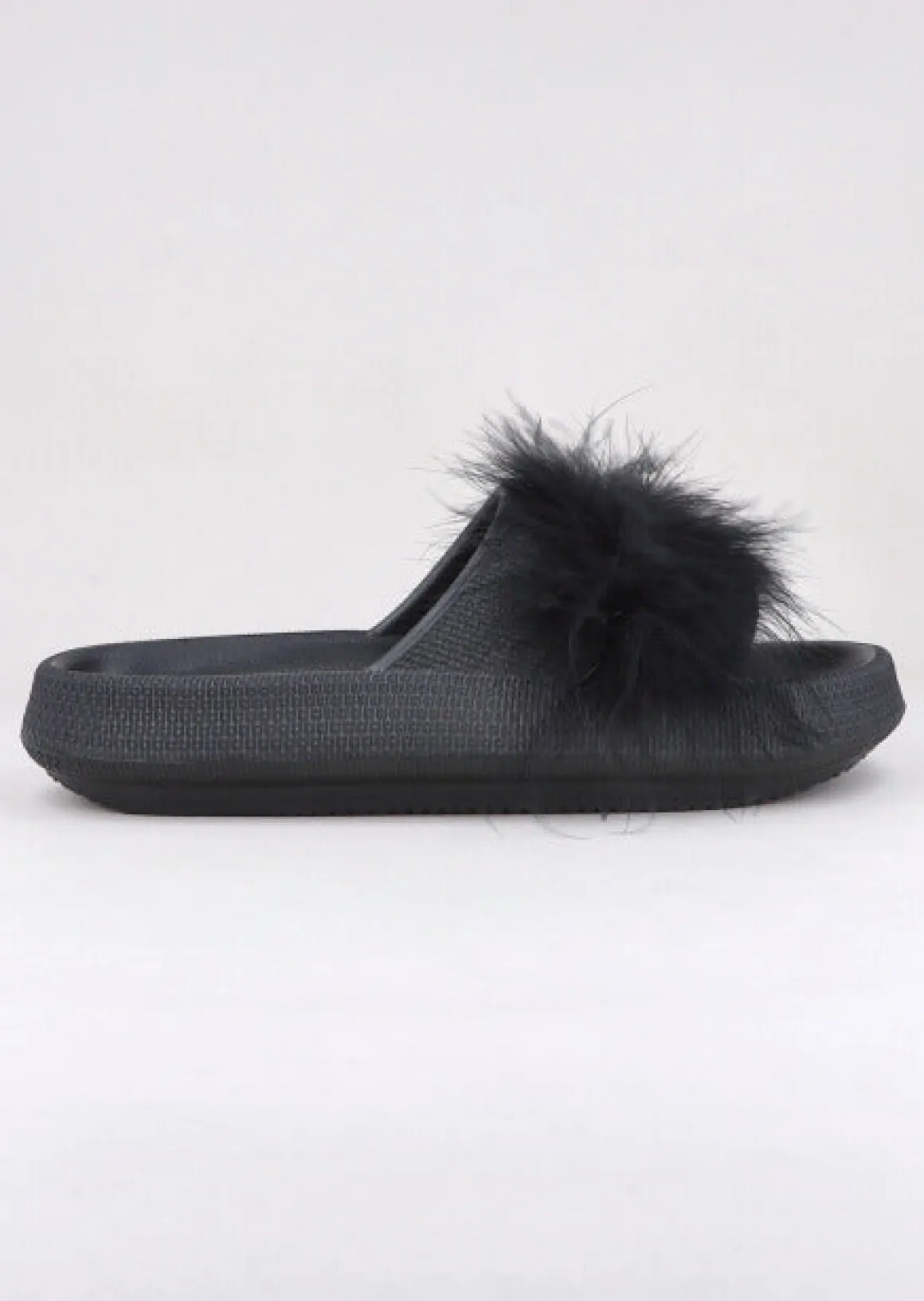 Sandalías con peluche en la parte superior, suela con volumen y textura.
