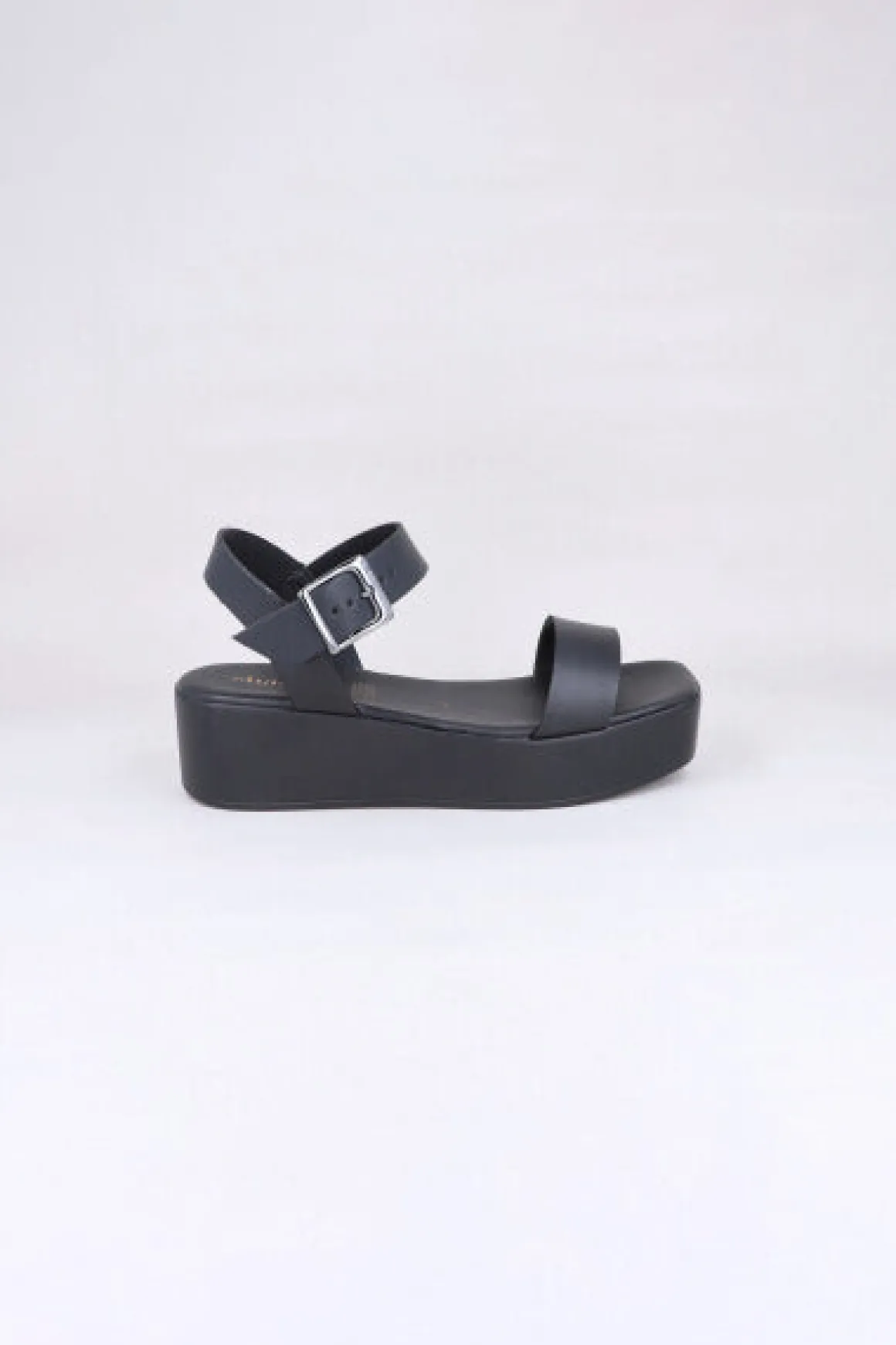 Sandalias de plataforma con cinta delantera. Cierre lateral con hebilla metálica.