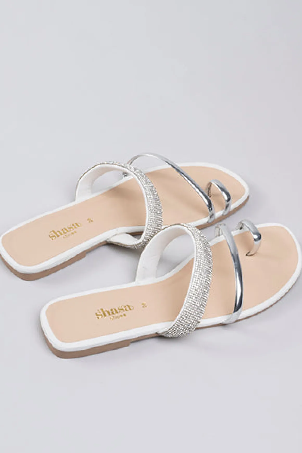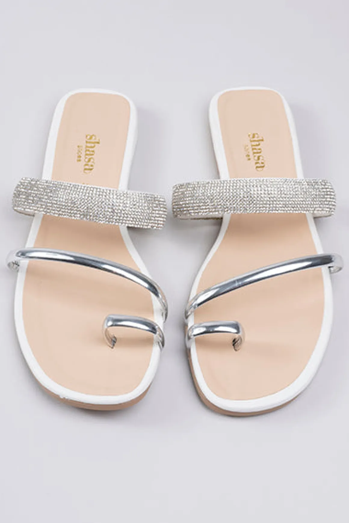 Sandalias pala con tiras de brillos y anillo para dedo..