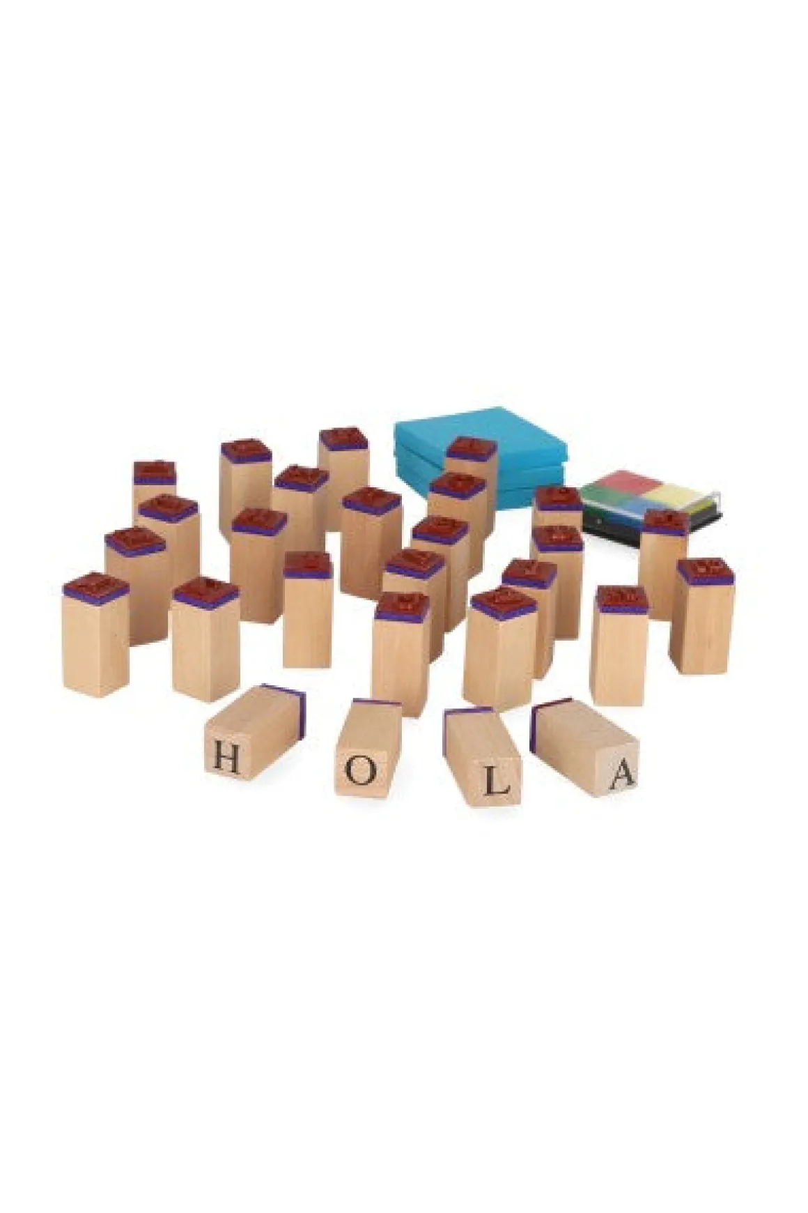 Set completo de sellos de madera con todas las letras del abecedario. Perfectos para actividades educativas y artísticas. Explota tu creatividad con estos sellos.