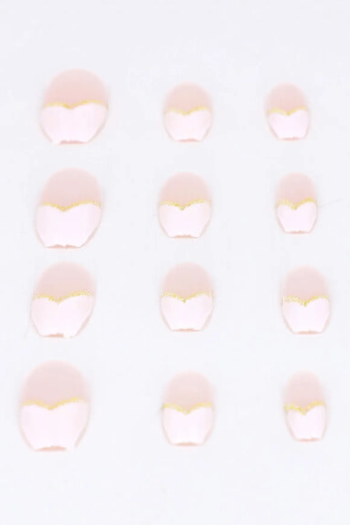 Set de 12 uñas largas autoadhesivas de punta ballerina french con decorativo de brillos.