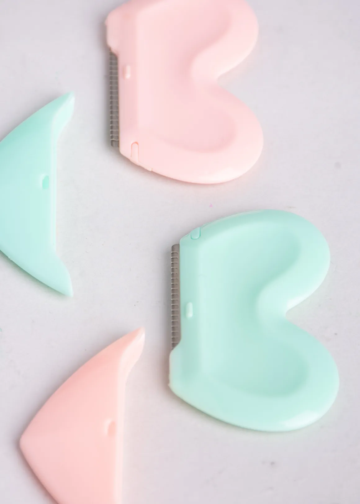 Set de 2 perfiladores de ceja con navaja de acero inoxidable. Diseño en corazón con cabecilla protectora