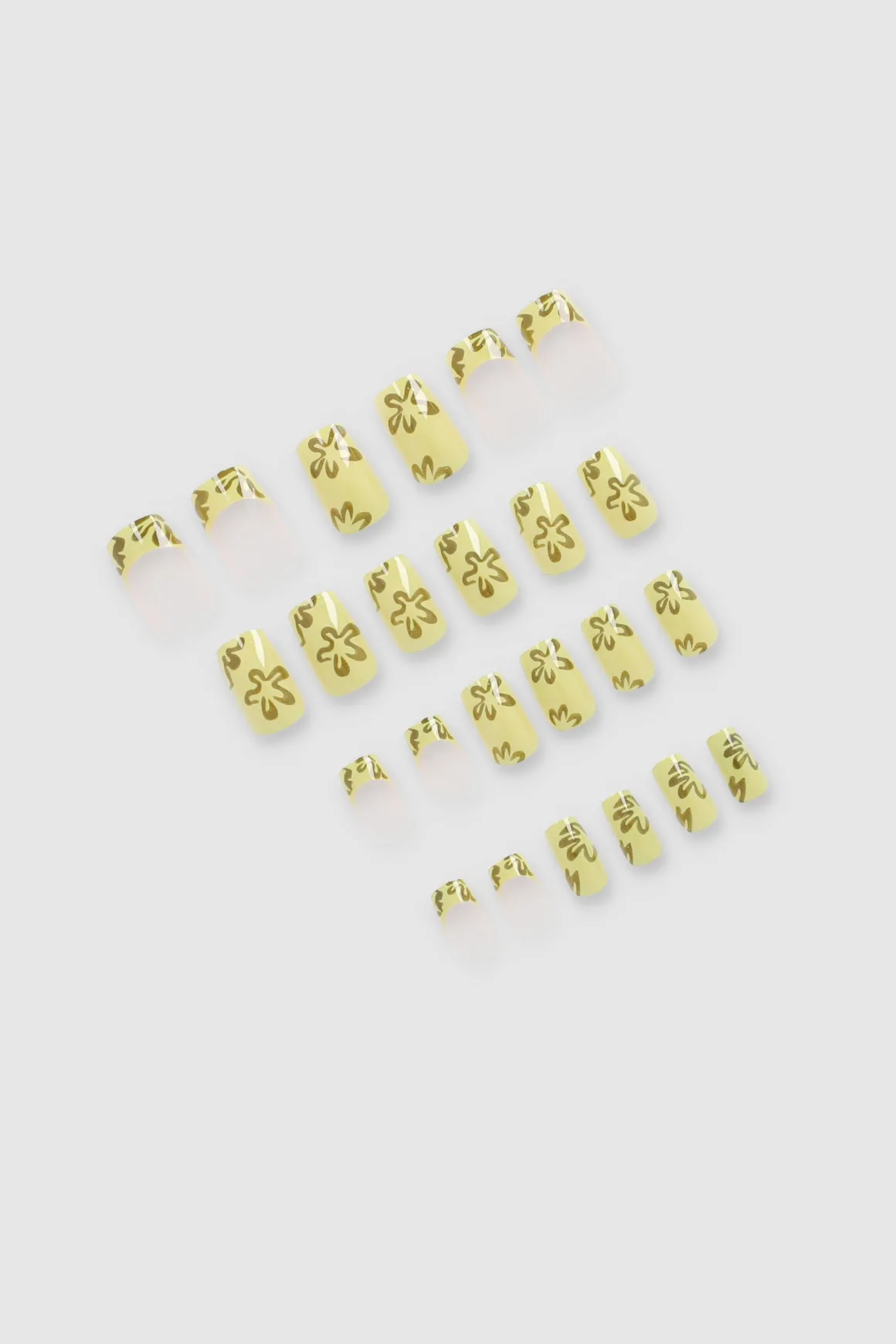 Set 24 piezas de uñas postizas autoadhesivas. Punta pointy con efecto brillo. Diseño con brillos en línea.