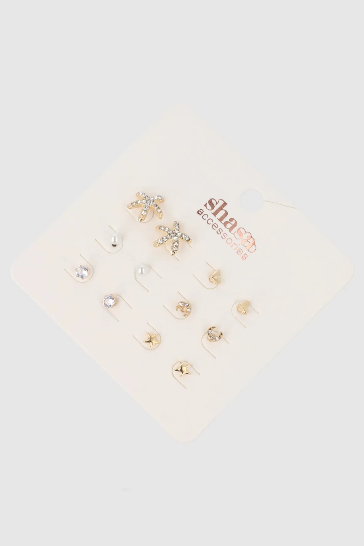 Complementa tus looks con una cantidad infinita de posibilidades con este set de 6 aretes con diseños únicos.